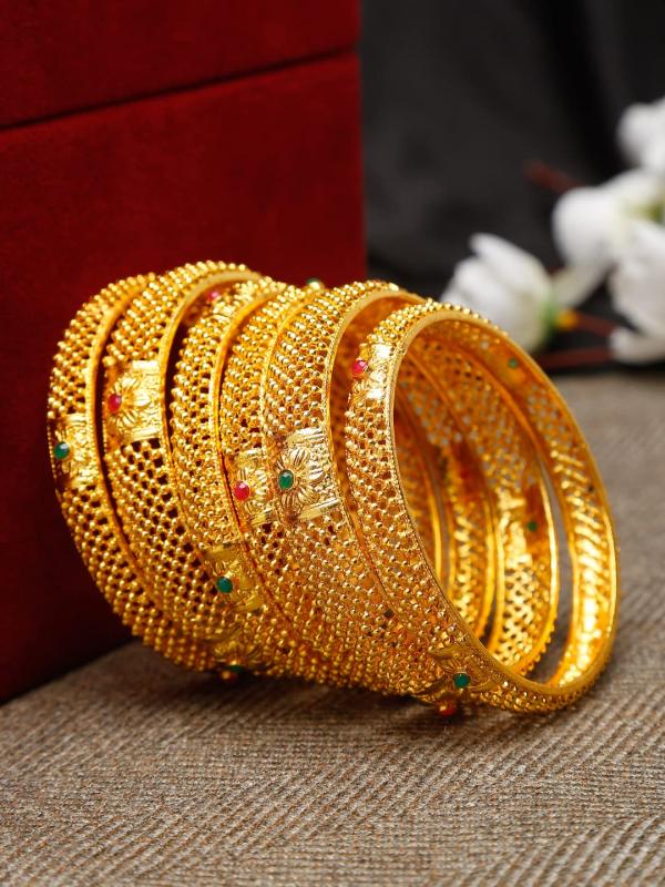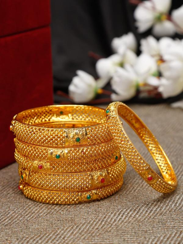 Elevate your style with this set of 6 stylish traditional bangles. Perfect for adding a touch of elegance to your outfit.