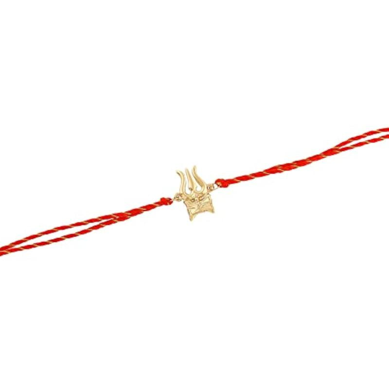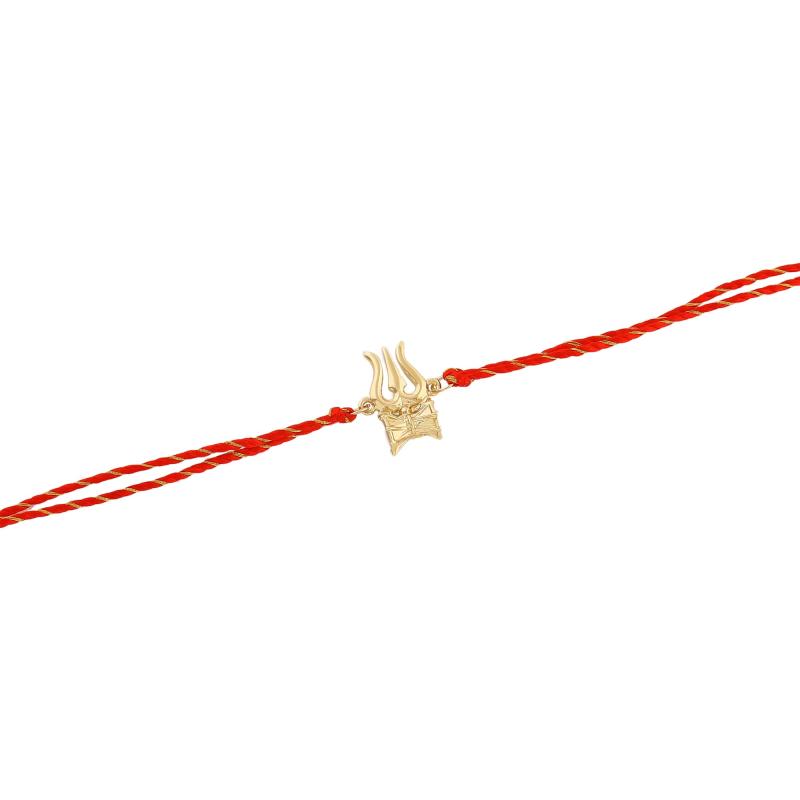 This bracelet combines spiritual symbols with elegant design. The red silk thread adds a divine touch.