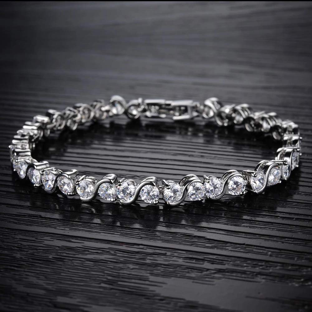 Elegantly designed platinum plated bracelet featuring sparkling crystals, perfect for adding glamour to any outfit.