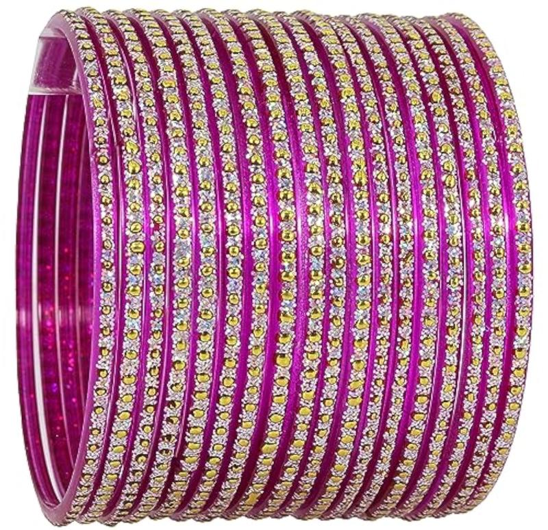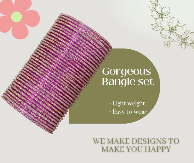 Elevate your traditional look with this fancy bangle set featuring glass design with polka dots and glitter accents. Perfect for special occasions or everyday wear.