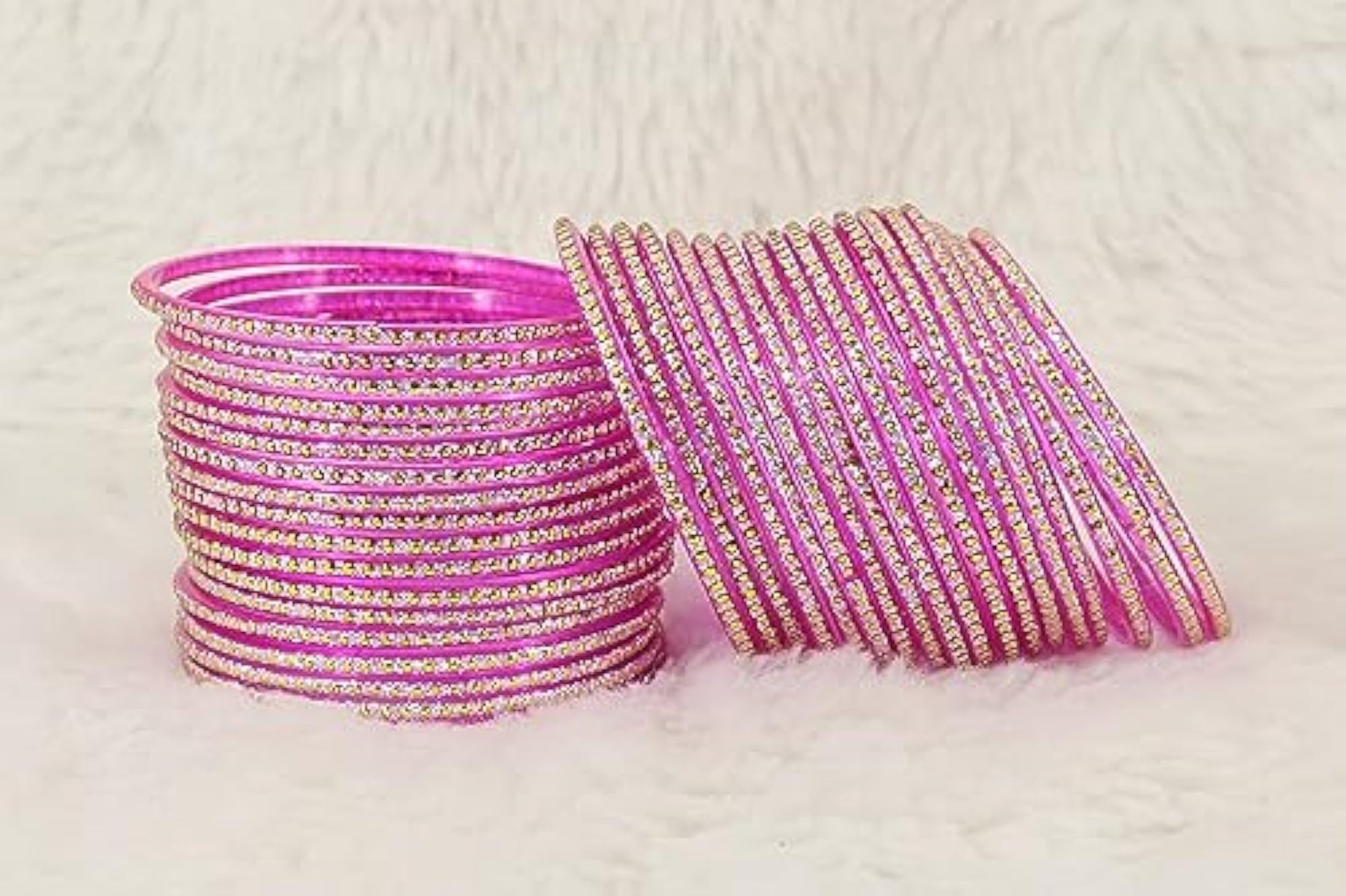 Elevate your traditional look with this set of 36 stylish bangles featuring a glass design with polka dots and glitter. Perfect for any occasion.