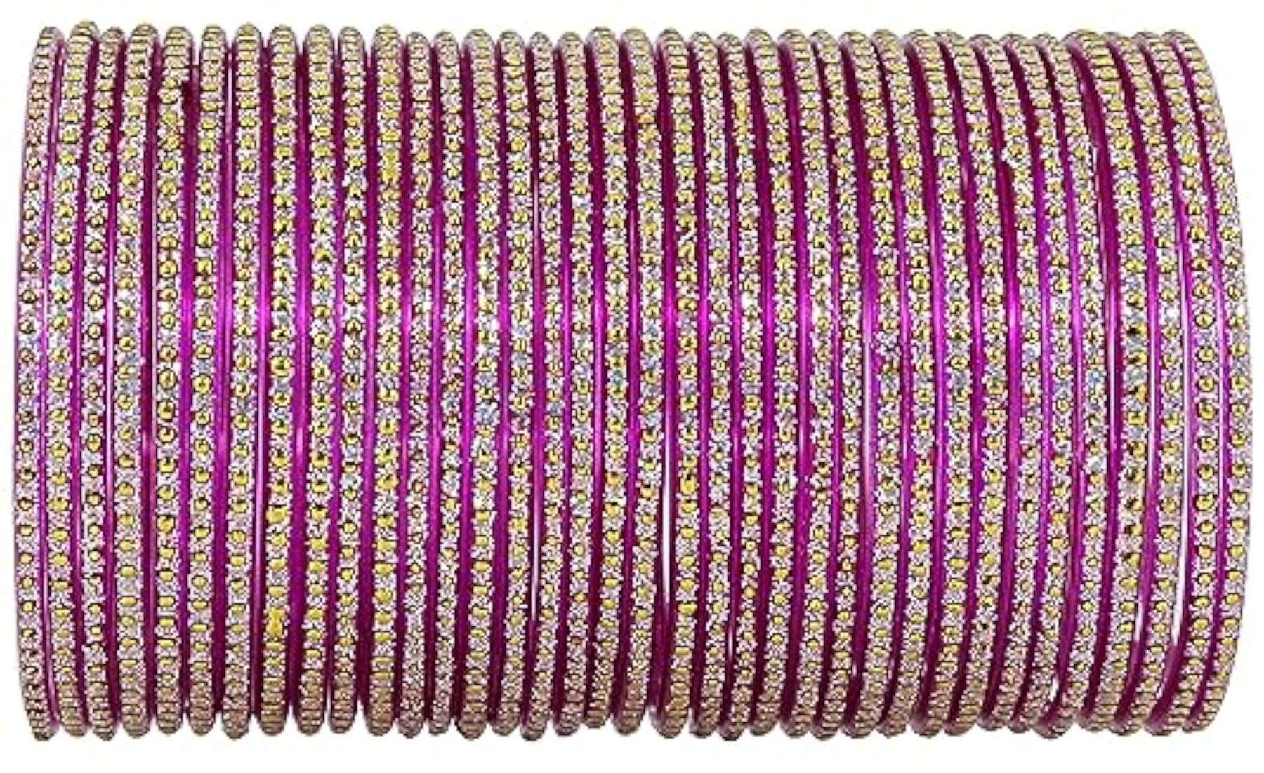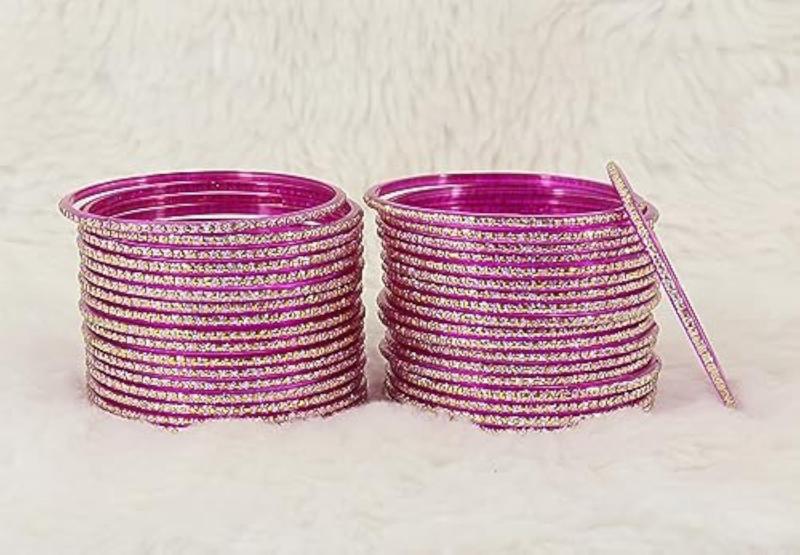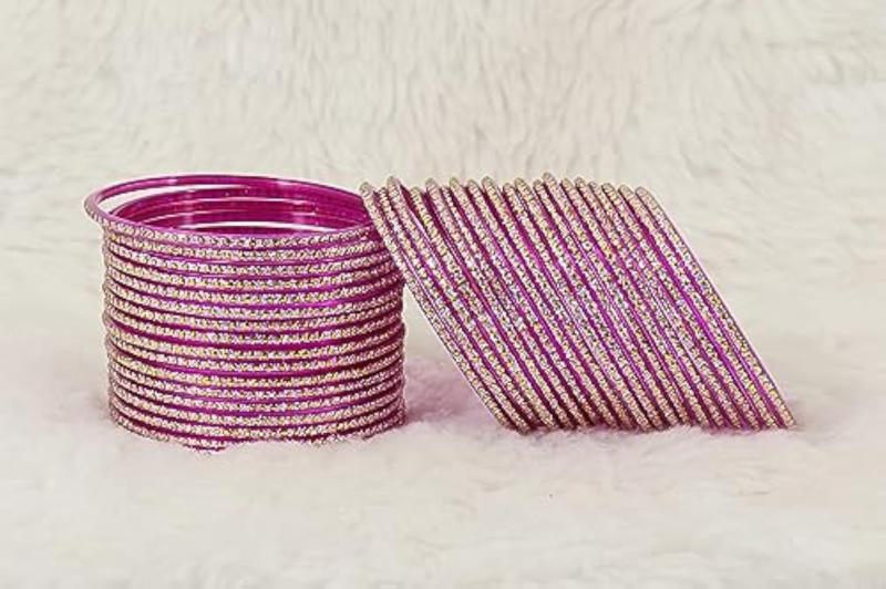 Add a touch of elegance to your traditional outfits with this set of 36 stylish bangles featuring a polka dot and glitter design. These bangles are perfect for special occasions and celebrations.