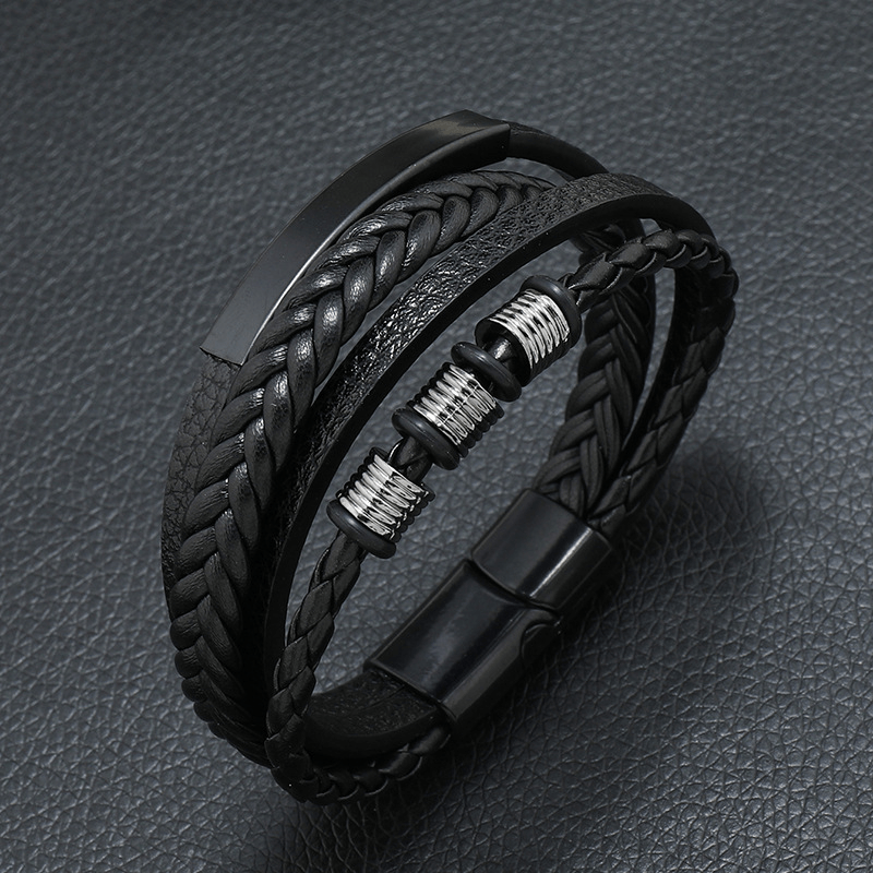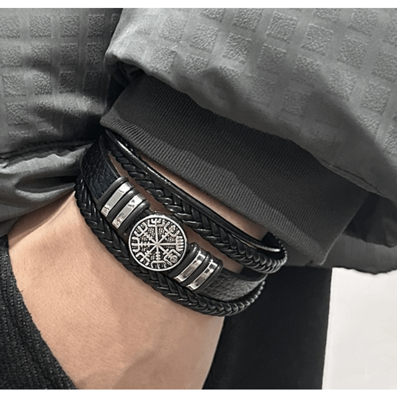 These punk leather bracelets for men are perfect for all outfits. The layered, braided design adds a stylish touch. Features scripture, compass, and devil eye charms. Ideal as a gift.