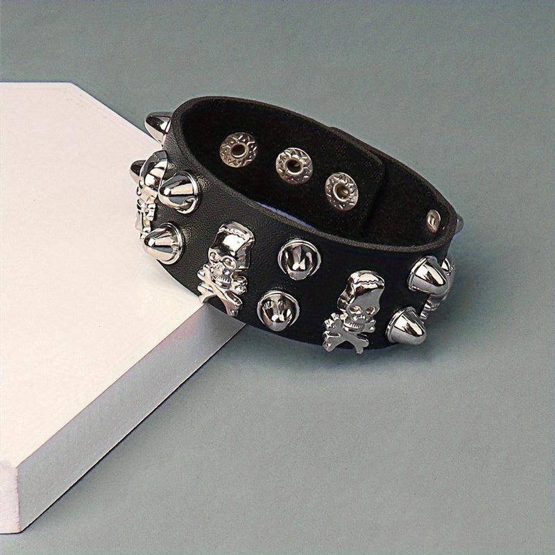 Add an edgy touch to your outfit with this punk style PU leather chunky bangle bracelet that enhances your unique personality.