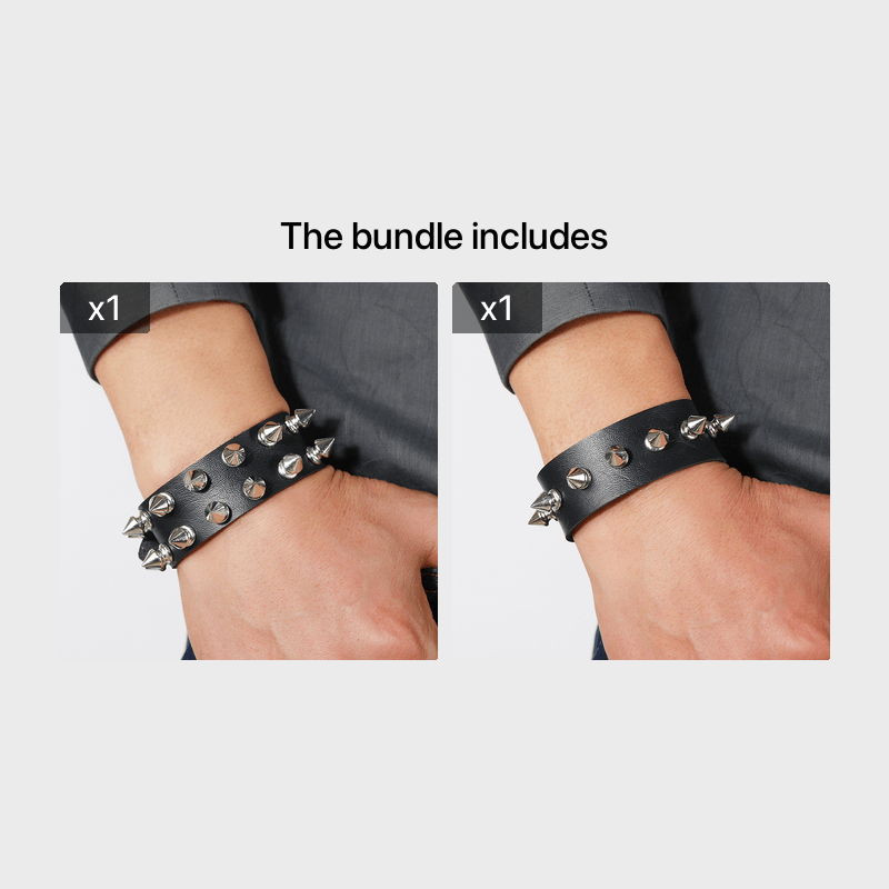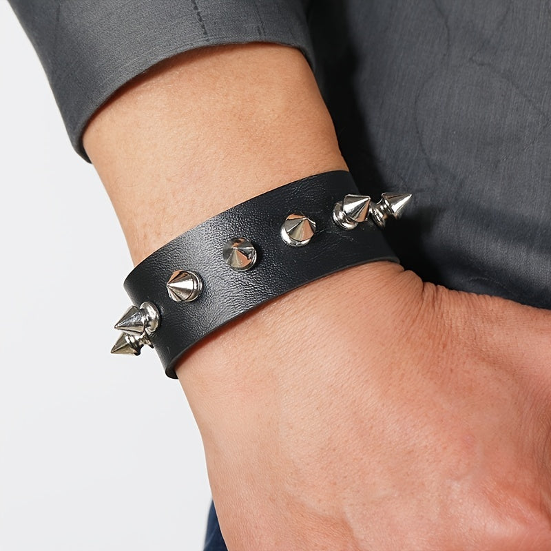 This rivets leather bracelet is designed in a punk style for a bold and edgy look.