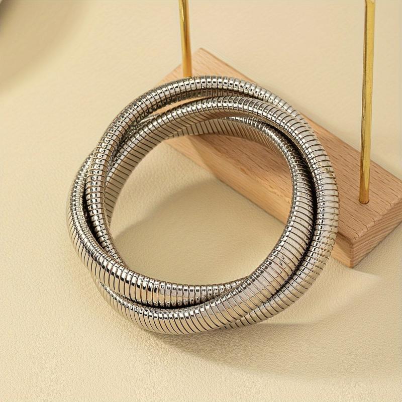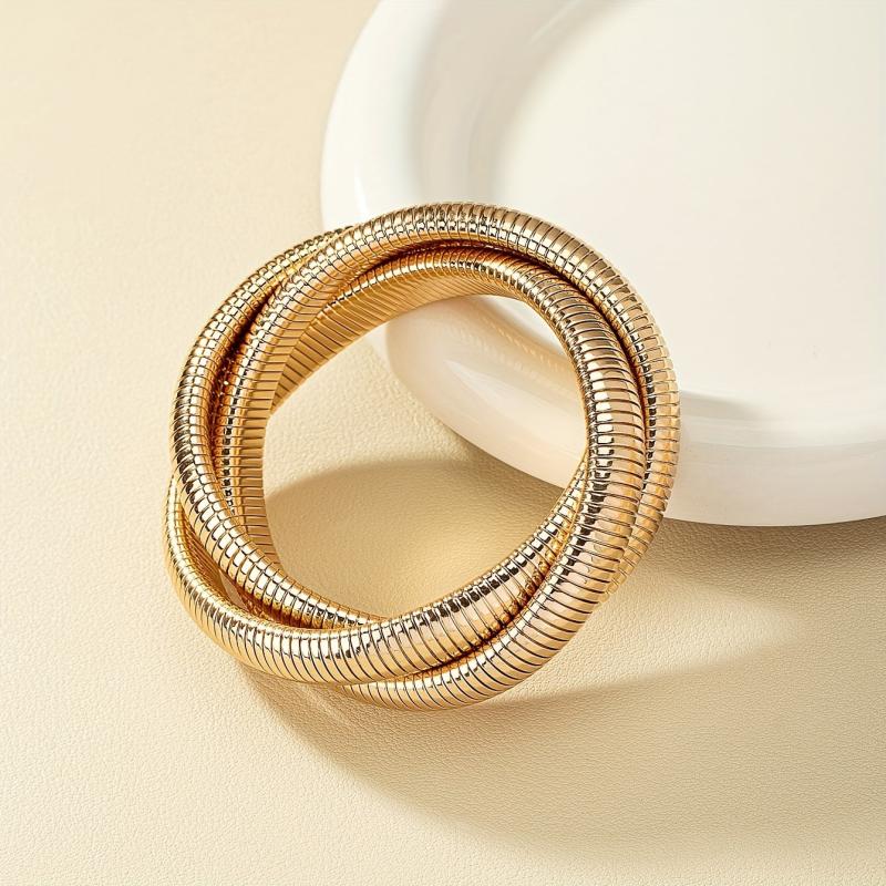 Punk Style Three Layer Cross Knit Bangle