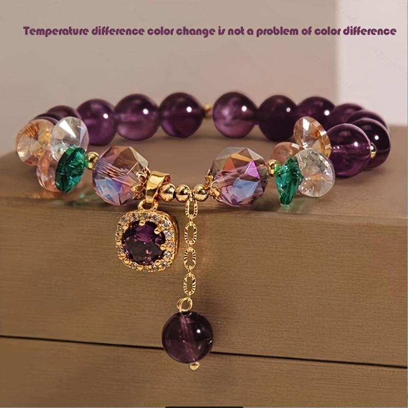 This stunning bracelet features purple and golden beads with cubic accents, perfect for daily wear or gifting to someone special.