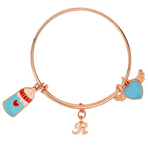 This stunning bracelet features a heartwings and bottle charm design with rose plating. Perfect for adding a touch of elegance to your wrist.