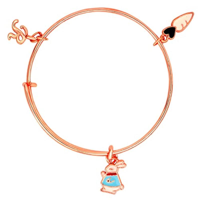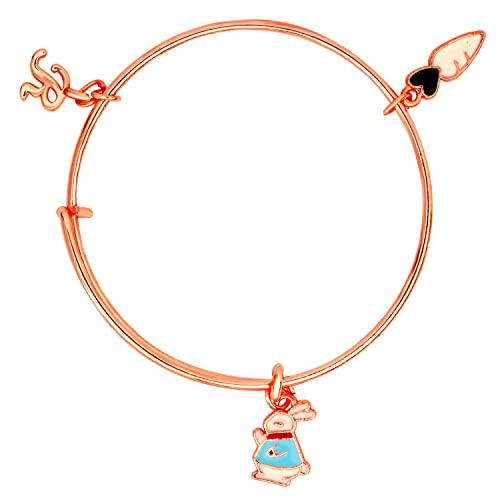 Adorable bracelet featuring an enamel raddish and rabbit charm with a rose plating finish.