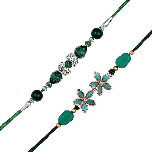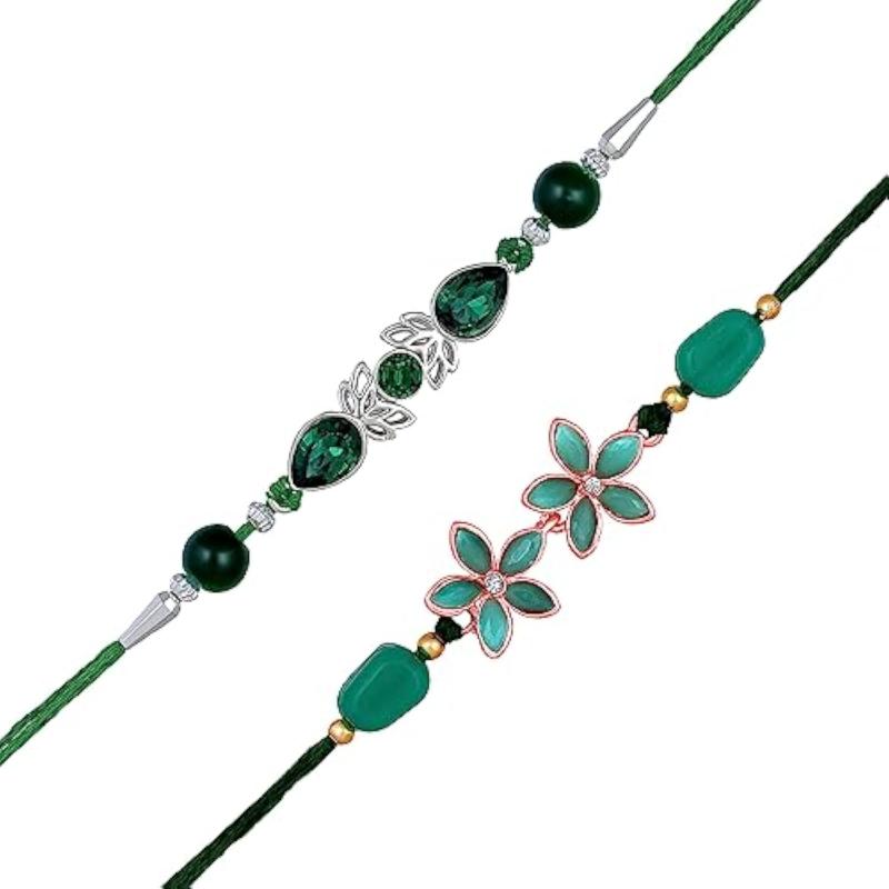 Beautiful set of two Rakhis adorned with crystals, perfect for gifting to your beloved brothers.