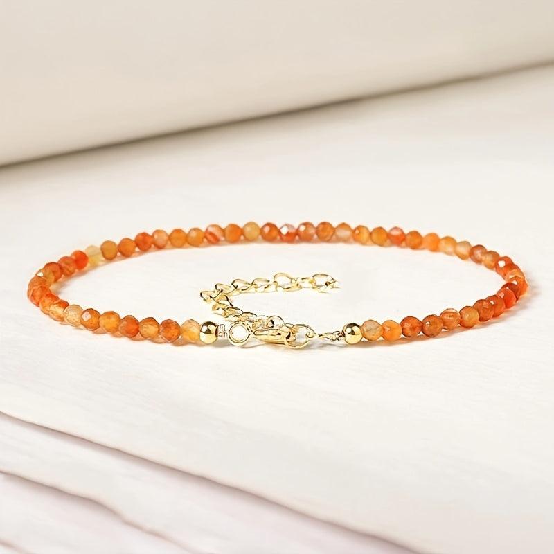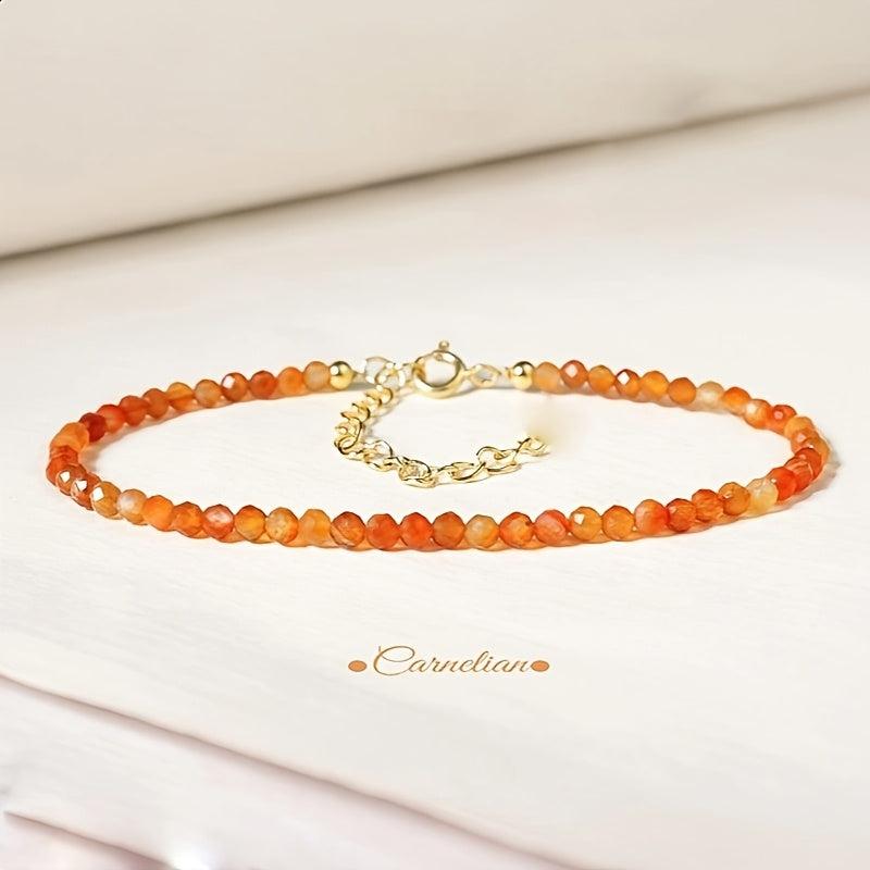 Elevate your casual attire with this minimalist Red Carnelian Stone Beaded Bracelet. A perfect gift for mom, sister, wife, or friends, this stylish wristwear adds a touch of bohemian charm to any outfit.