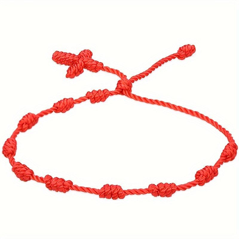 Add a pop of color to your outfit with this bright red friendship bracelet. The adjustable braided rope with knot detail is perfect for casual or party wear.