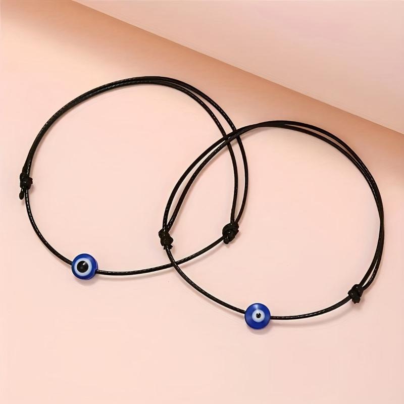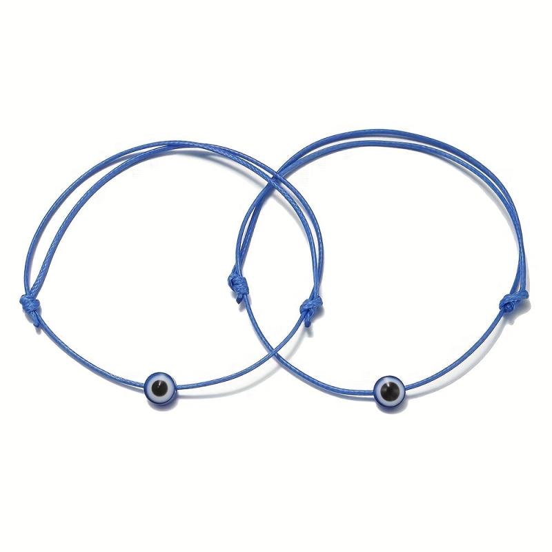 Embrace a vintage vibe with these European and American cross-border colored rope bracelets. Each set includes two hand-woven bracelets featuring devil eye design. Perfect for couples or friends.