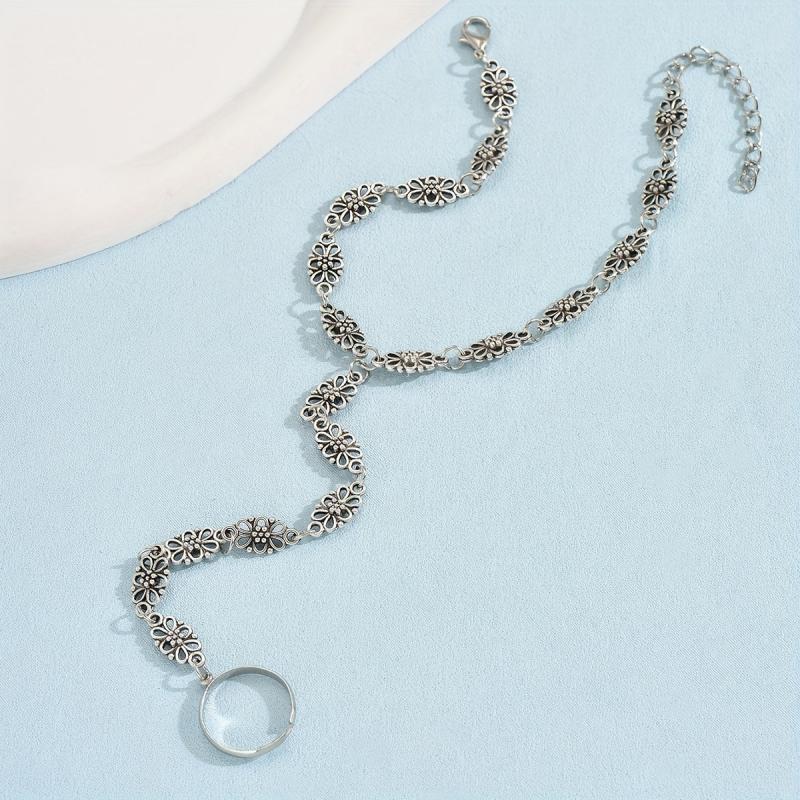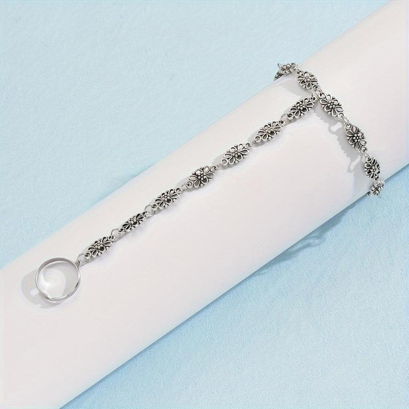 Elevate your style with this stylish retro flower ring bracelet, perfect for daily wear or party dress up. A must-have accessory for any fashion-forward individual.