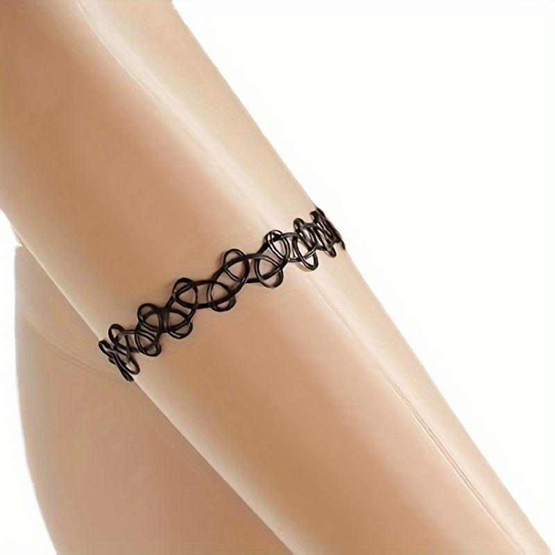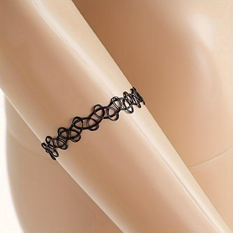 Vintage-inspired jewelry set featuring intricate hollowed out designs, woven fishing line details, and adjustable elastic for a comfortable fit. Perfect for adding a touch of elegance and sexiness to any outfit.