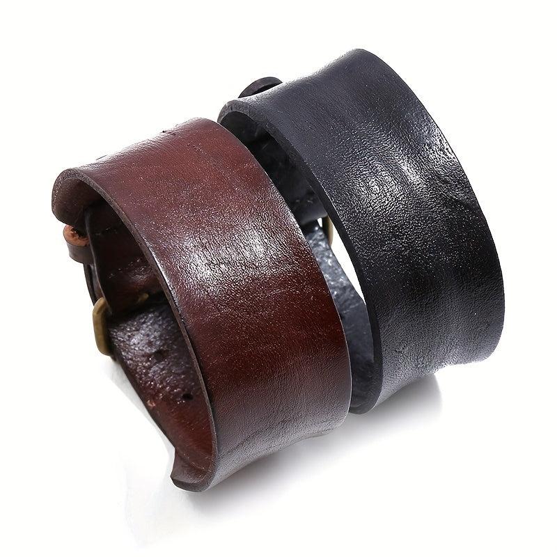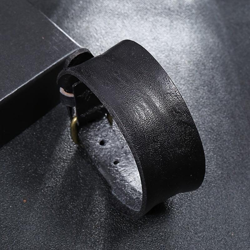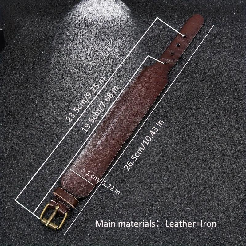 Add a touch of retro style to your look with this versatile leather bracelet designed for bikers and punk enthusiasts.