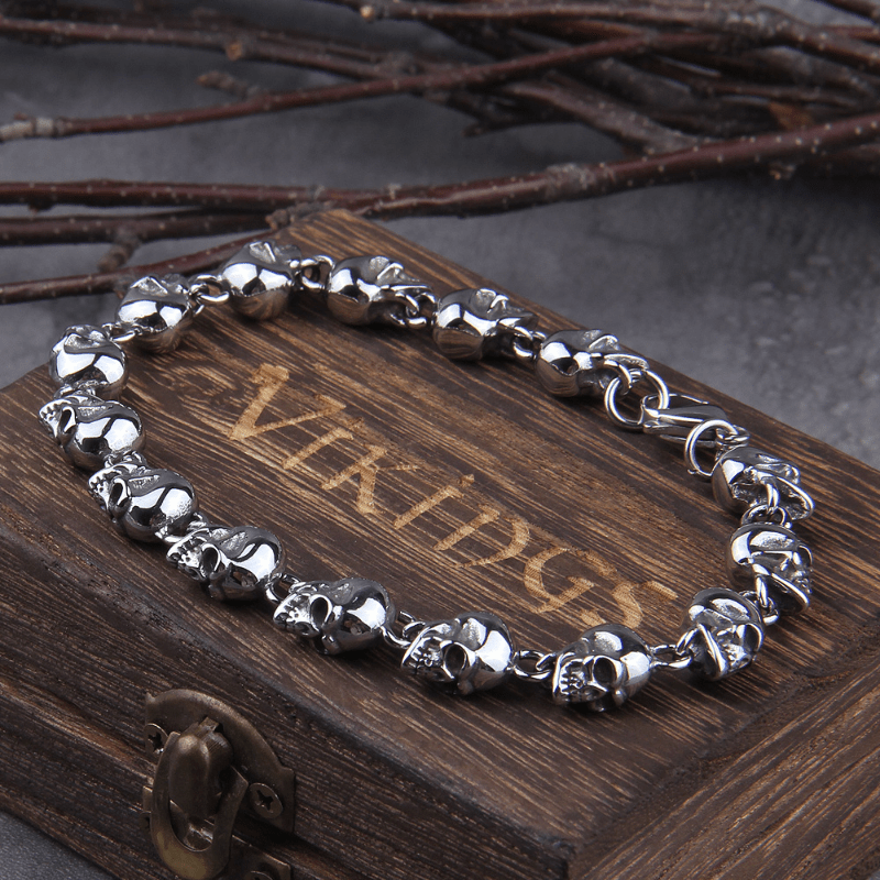 Add a touch of edgy style to your outfit with this retro skull chain bracelet. Perfect for daily wear or as a gift for family and friends on holidays or birthdays.