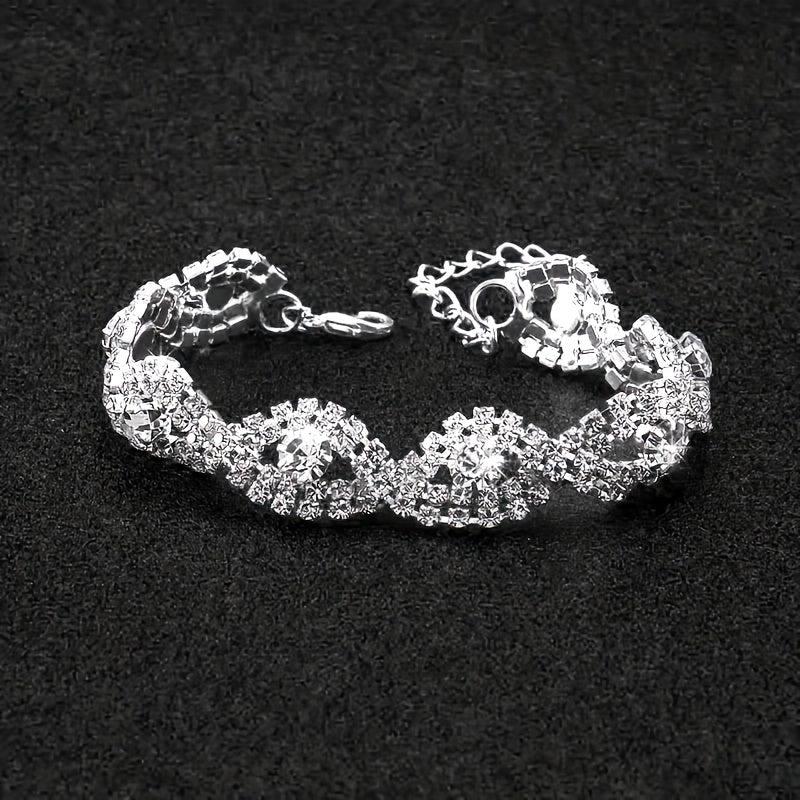 This elegant bracelet features a stunning design with rhinestone embellishments. Perfect for weddings and special occasions.