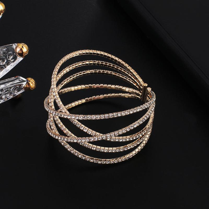 Rhinestones Wire Bracelet Chain Bangle Hand Jewelry Women Banquet Party