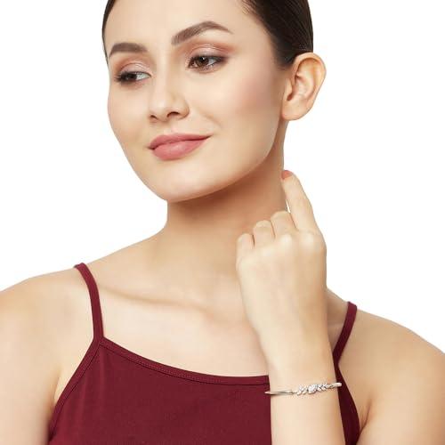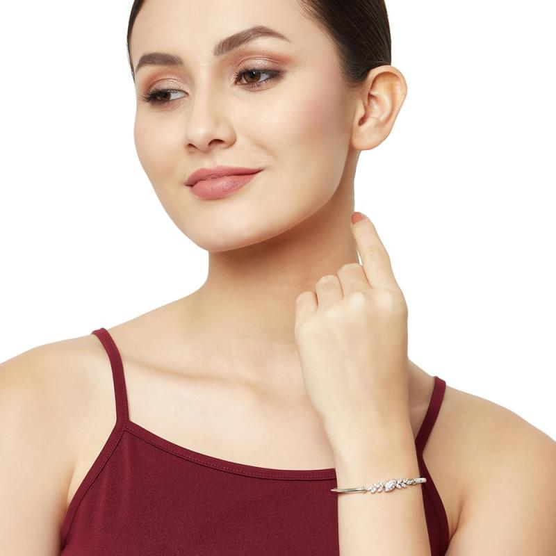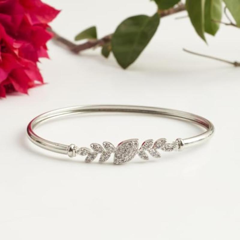 Elevate your look with this stunning rhodium-plated bracelet featuring delicate petal design.