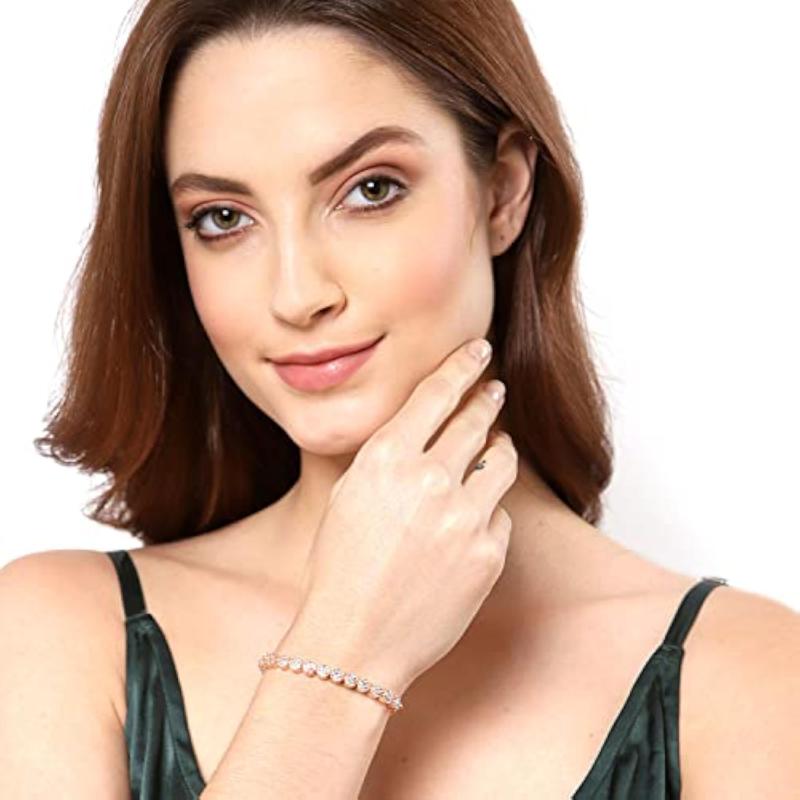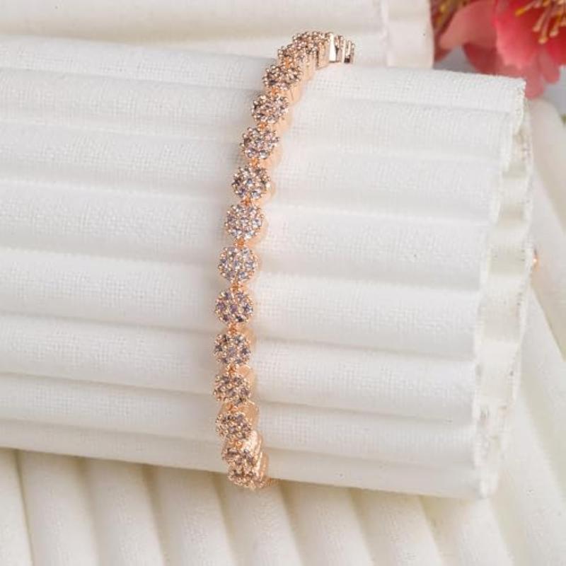 Elegant kada bracelet featuring teardrop and square shaped American diamonds in a rhodium-plated finish. Perfect for adding a touch of sparkle to any outfit.