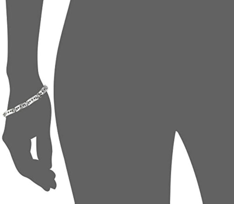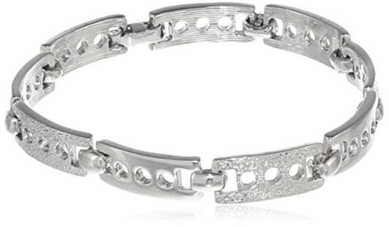 Elegant rhodium plated bracelet with intricate sloted box design, perfect for any occasion.