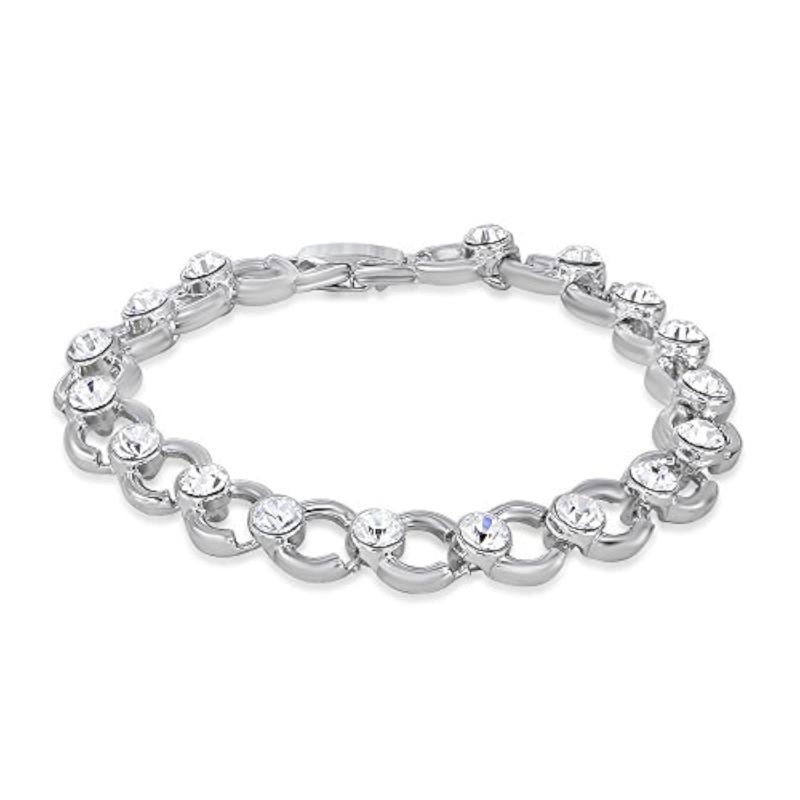 Add a touch of elegance with this rhodium plated bracelet featuring sparkling crystals. Perfect for any occasion.