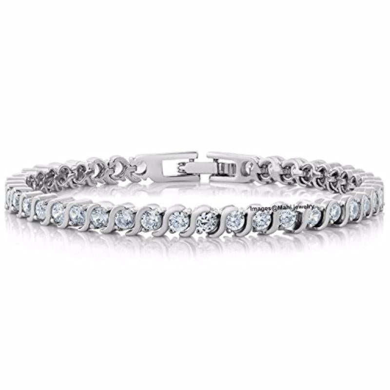Add a touch of elegance to your look with this stunning rhodium plated tennis bracelet featuring sparkling crystal stones.