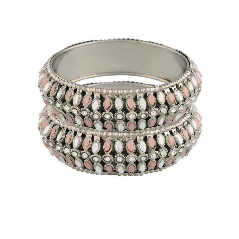 Elegant and traditional kada bangles adorned with pearls and kundan, perfect for special occasions.