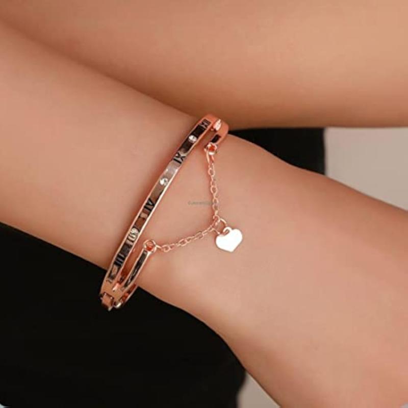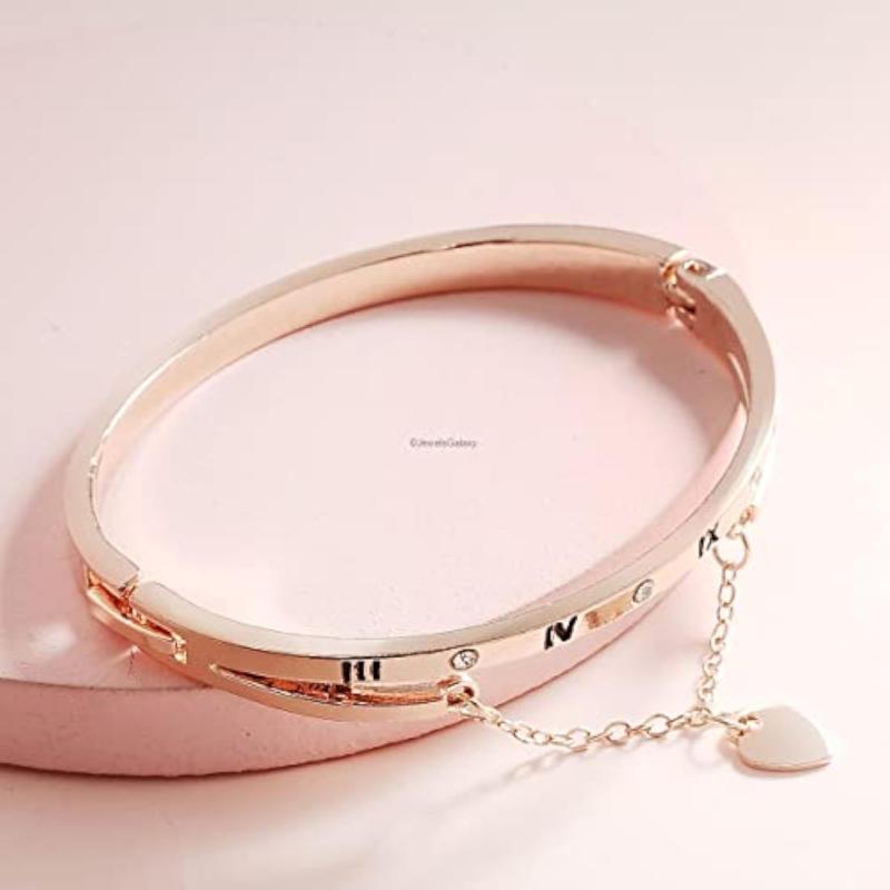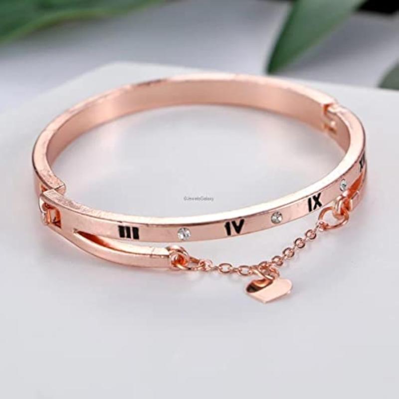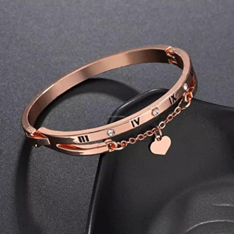Elegant and stylish bracelet featuring Roman numbers design with stone studding.