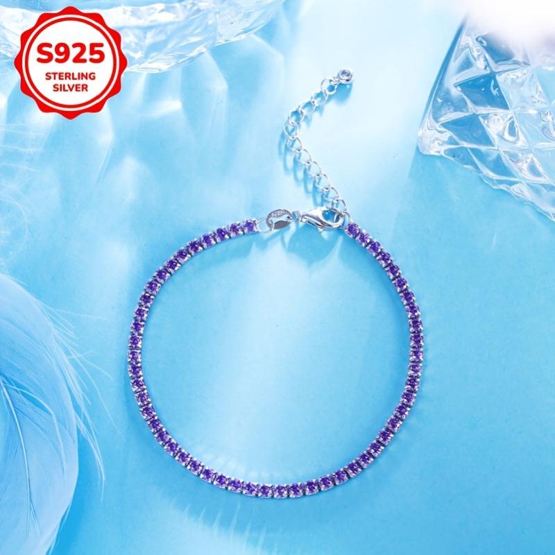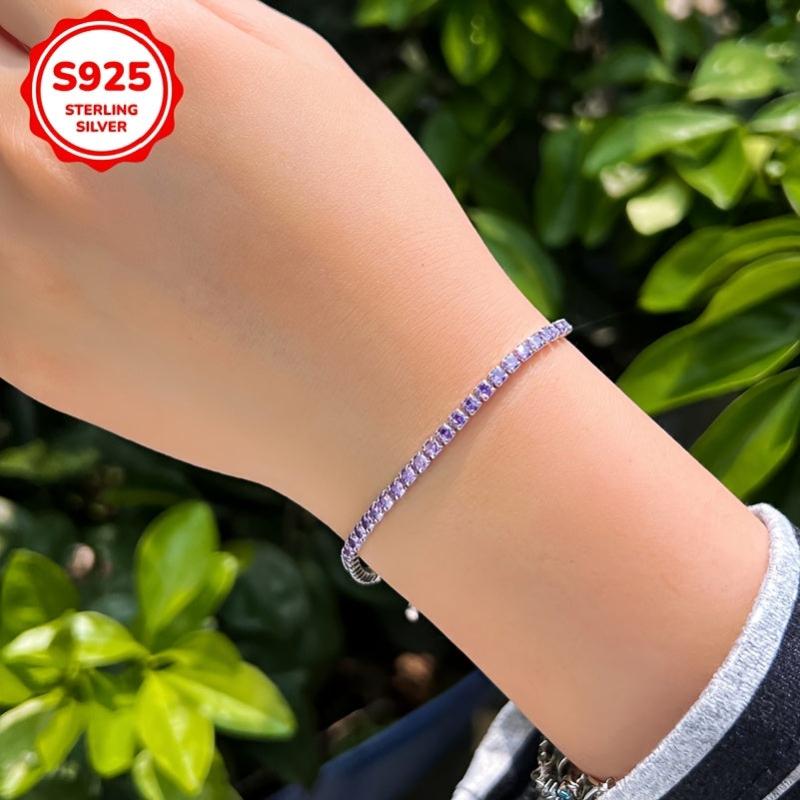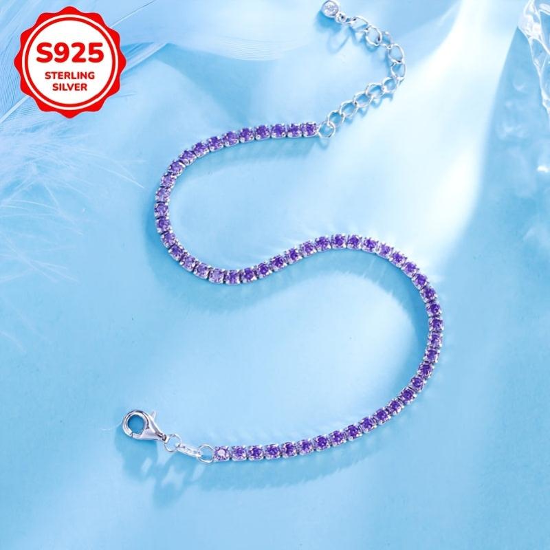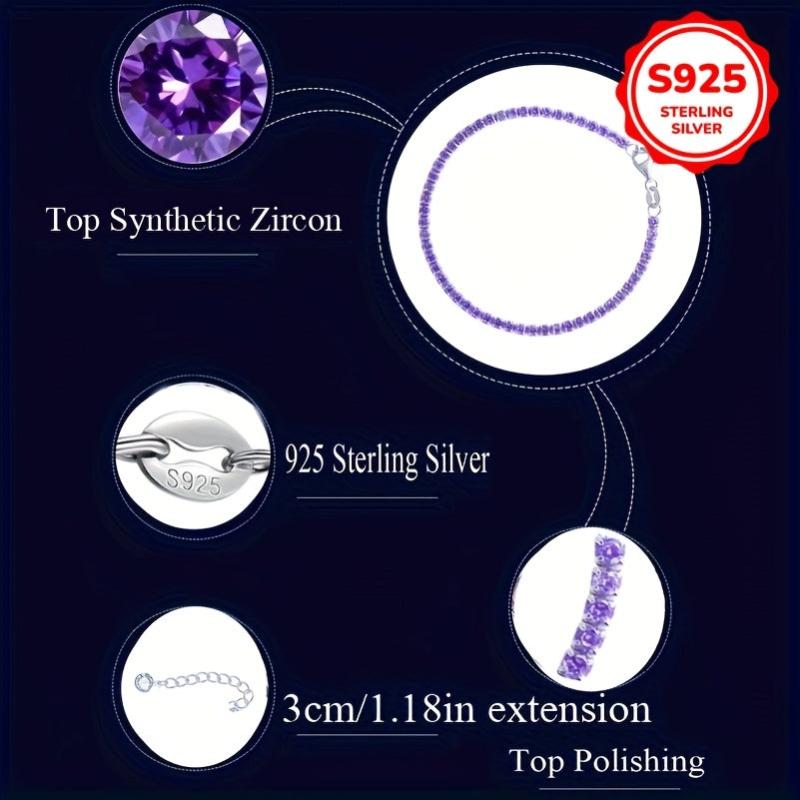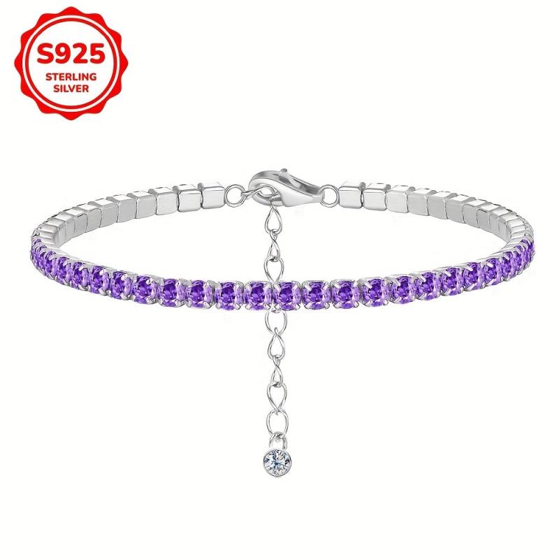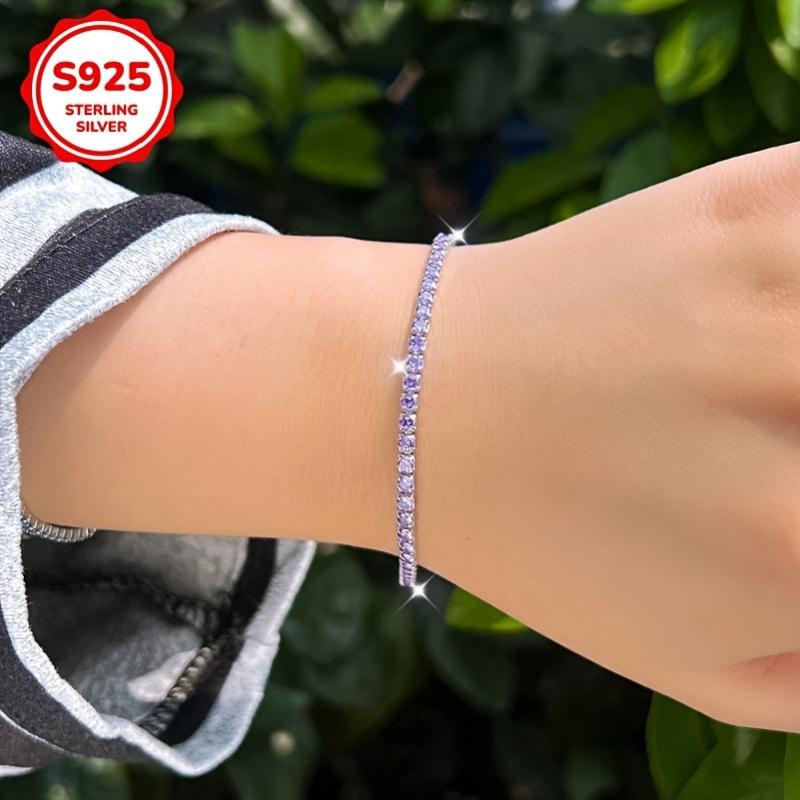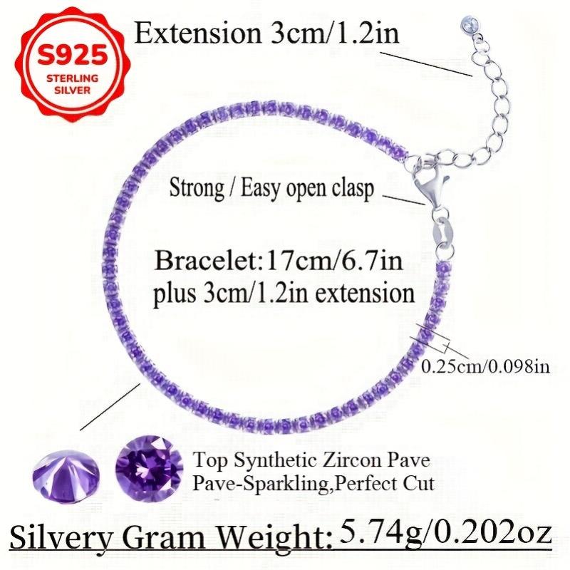 Elegant tennis bracelet featuring crushed ice round synthetic zircons. Made of 925 sterling silver, hypoallergenic and lightweight.