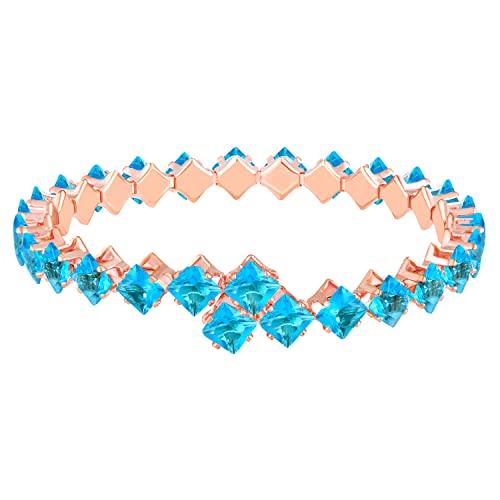Elegant kada bracelet featuring princess cut cubic zirconia studs in a rose plated setting. Perfect for adding a touch of sparkle to any outfit.