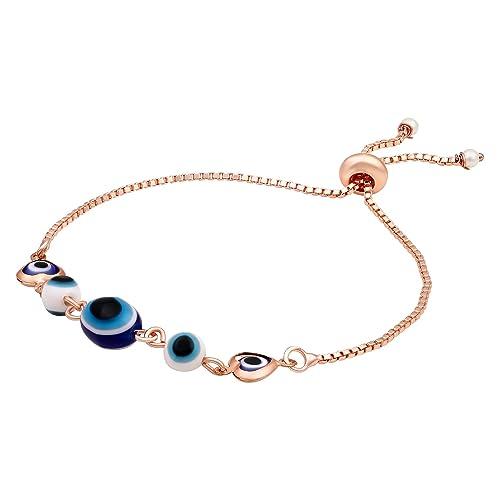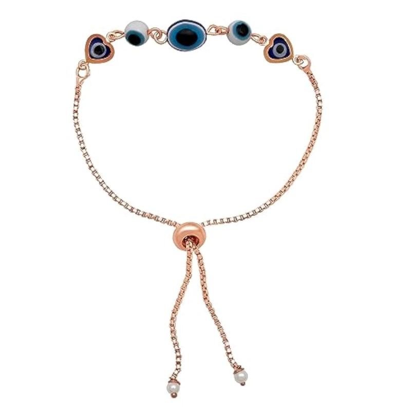 Add a touch of charm with this rose plated bracelet featuring an evil eye and heart design.