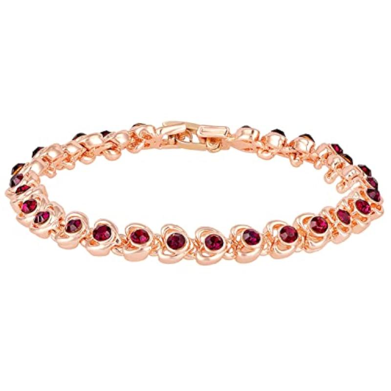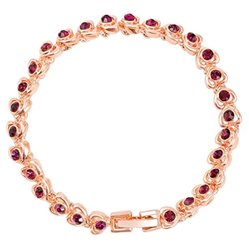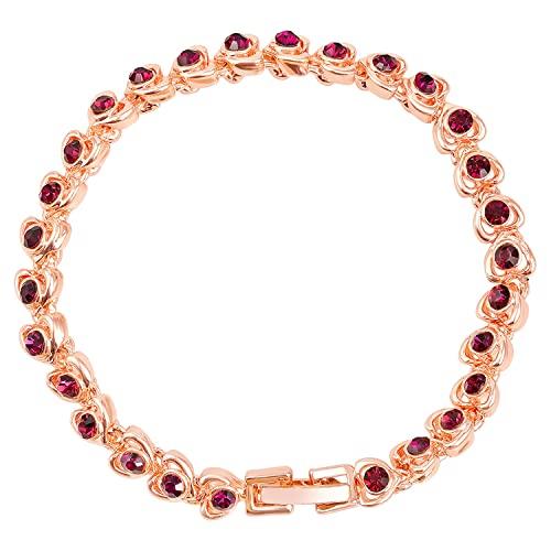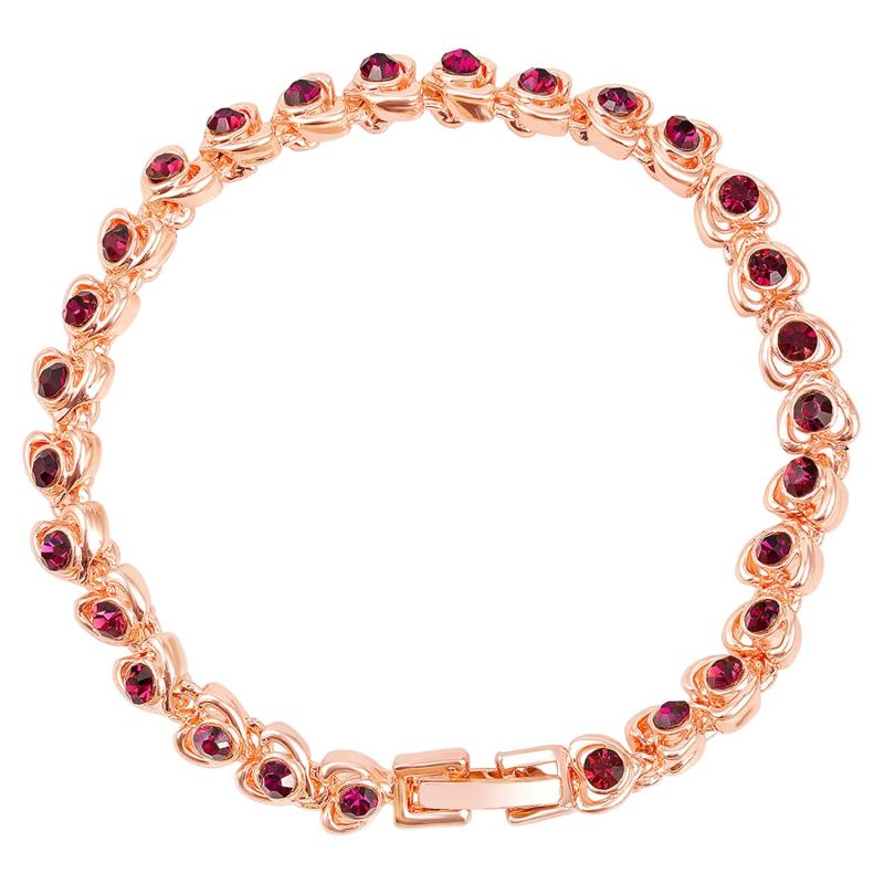 Elegant and stylish rose plated bracelet with small hearts featuring sparkling crystals. Perfect for adding a touch of sophistication to any outfit.
