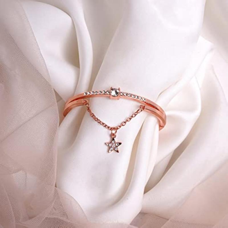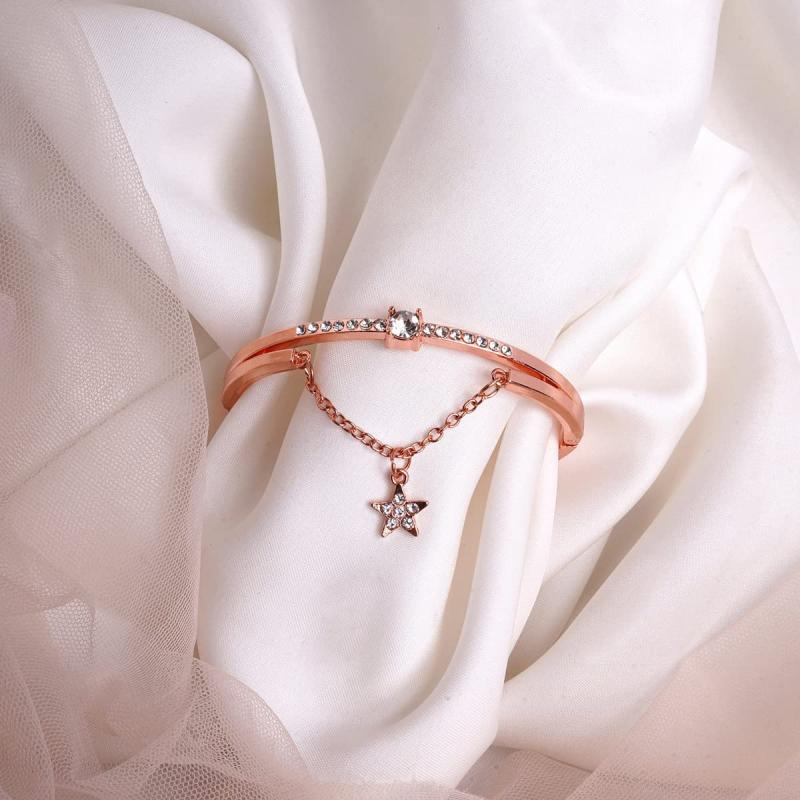 Add a touch of celestial elegance to your outfit with this rose plated bracelet featuring star-inspired design and sparkling stones.