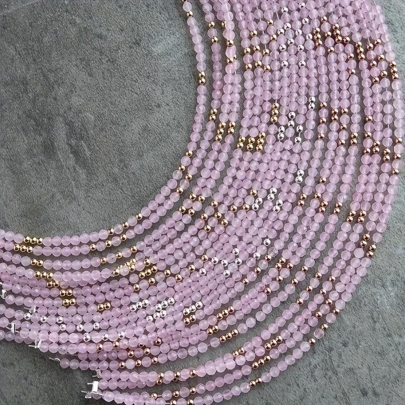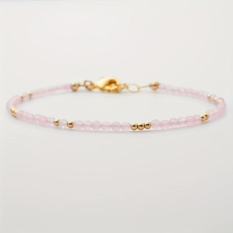 Add elegance to your look with this faceted rose quartz bracelet featuring a golden clasp.