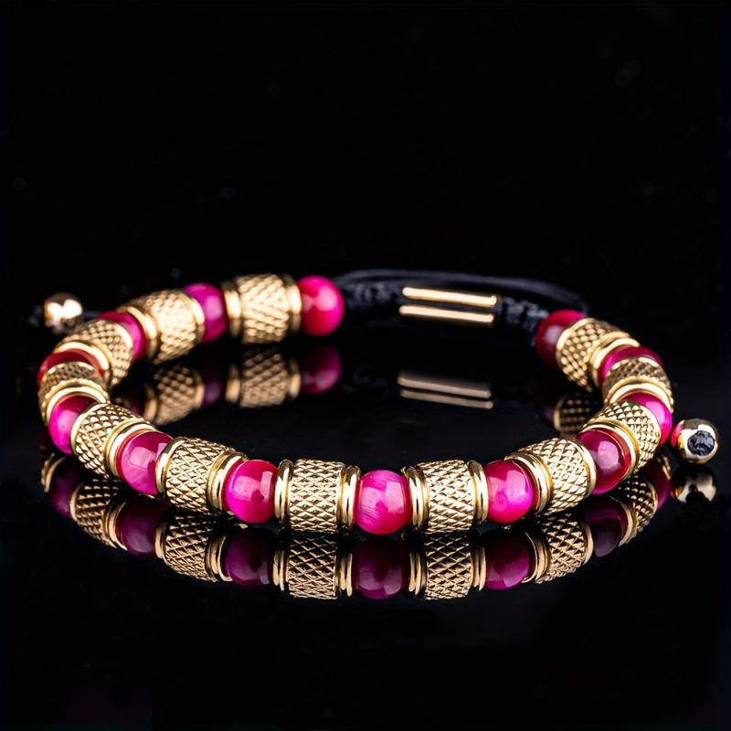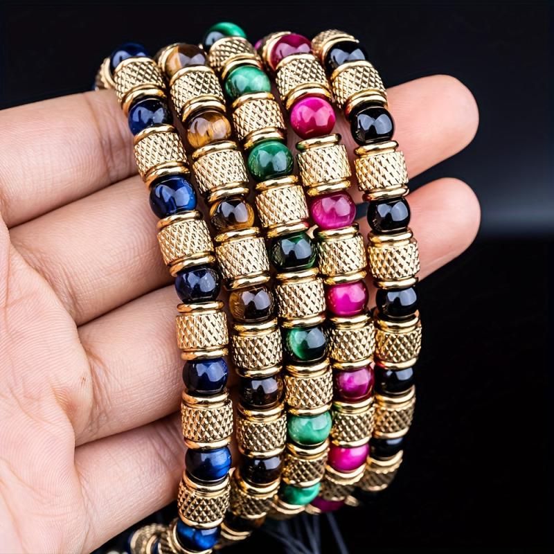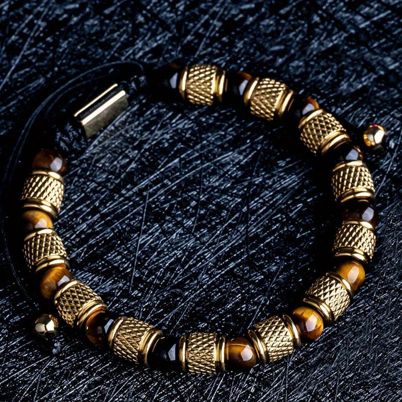 Elegant men's bracelets crafted from 304 stainless steel with tiger's eye gemstone. Perfect gift for couples or loved ones.