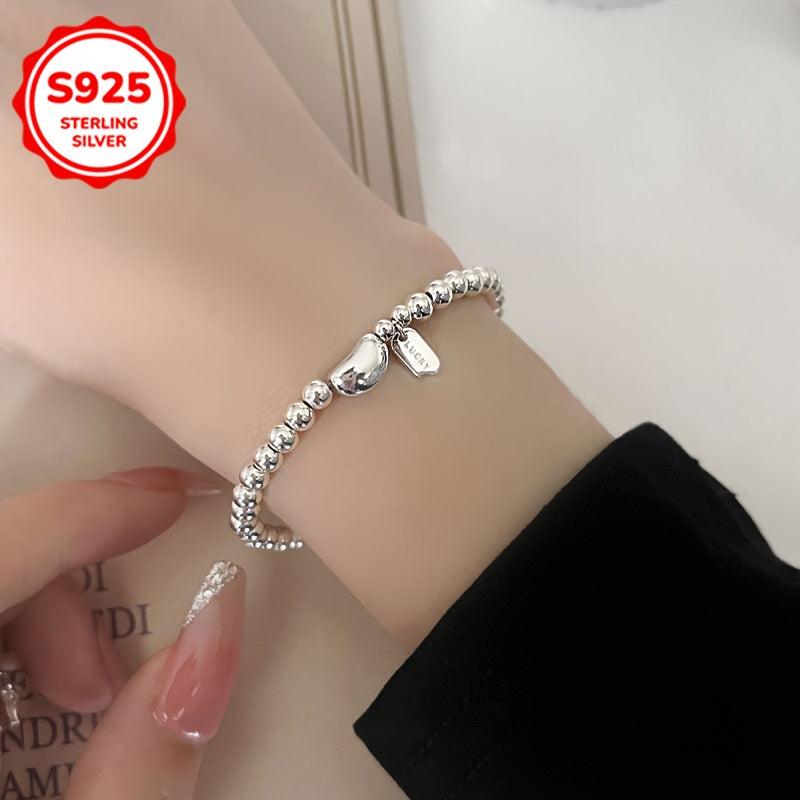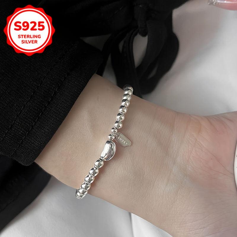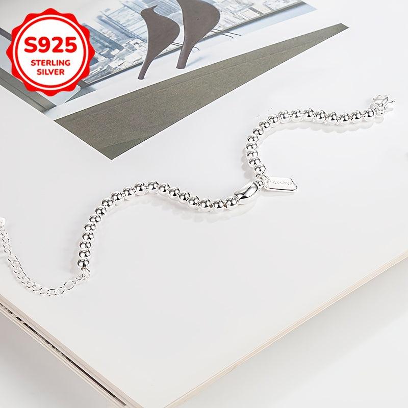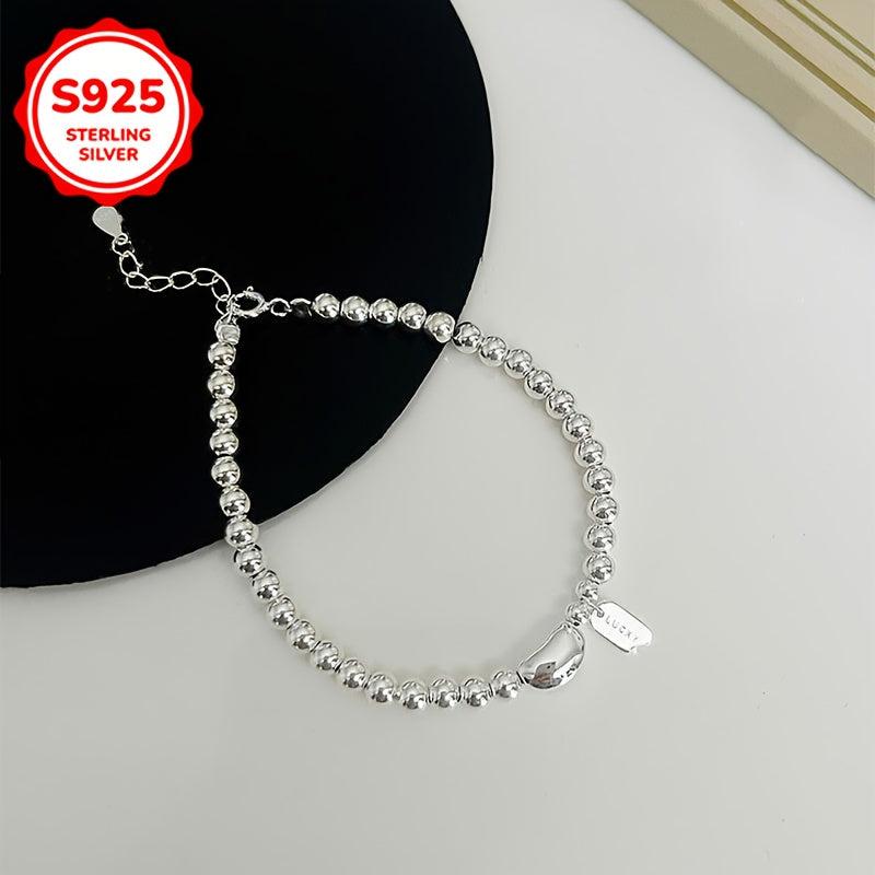Exquisite S925 silver bracelet, perfect for daily wear or as a thoughtful gift. Features a unique design with a round ball and square tag. Ideal for Valentine's, BFF gifts, or to add a touch of elegance to your outfit.