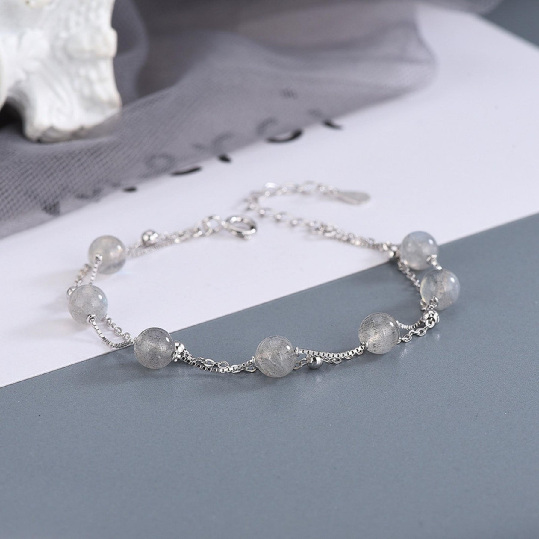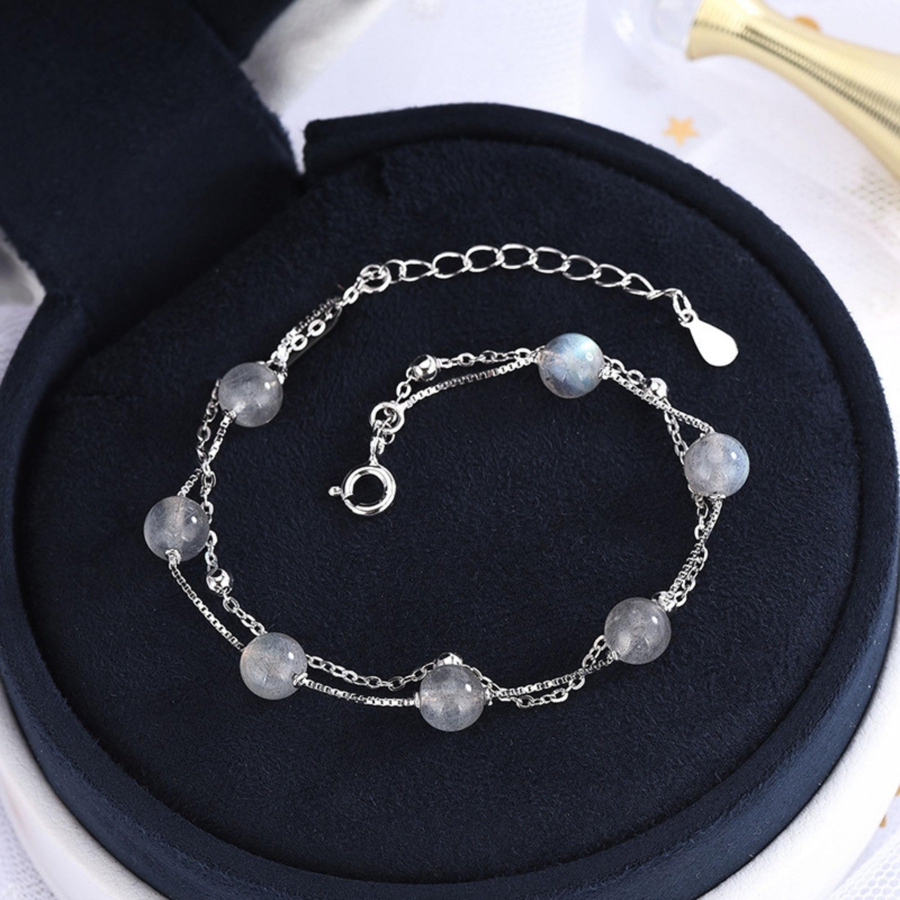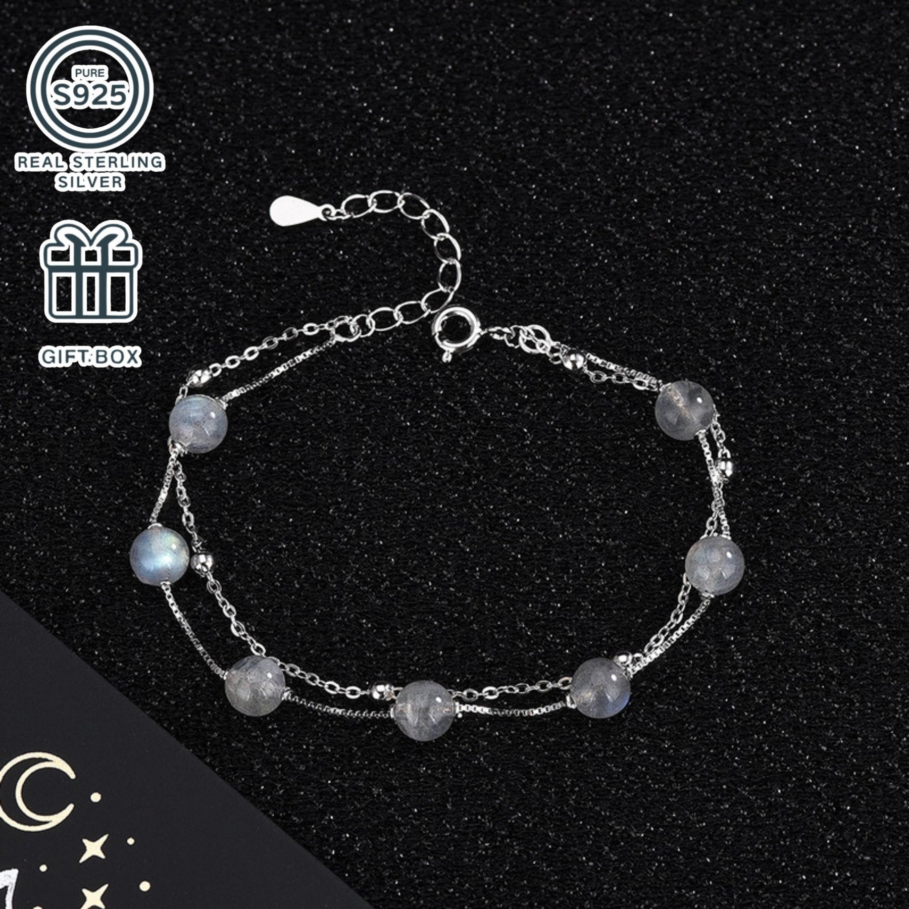 Elegant S925 silvery moonstone double layer bracelet, perfect for parties, gatherings, and daily wear. A great gift option for yourself or loved ones.