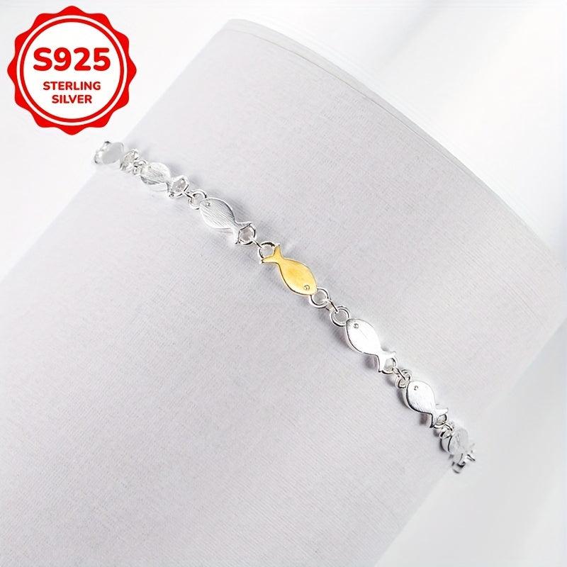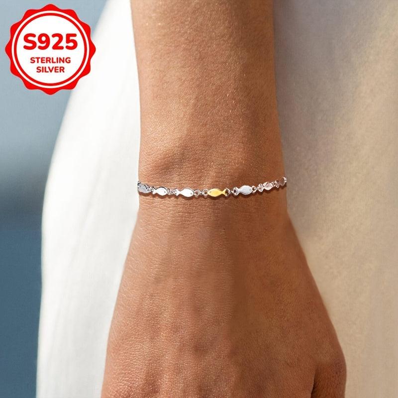 This stylish S925 silver bracelet features a unique spliced fish design, making it a versatile accessory suitable for daily wear.