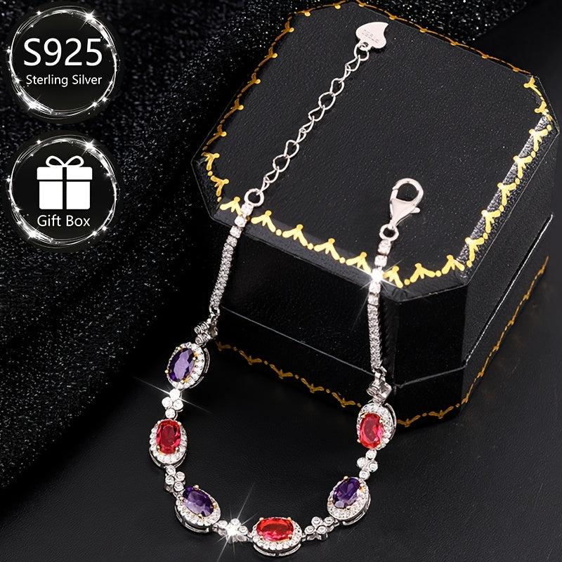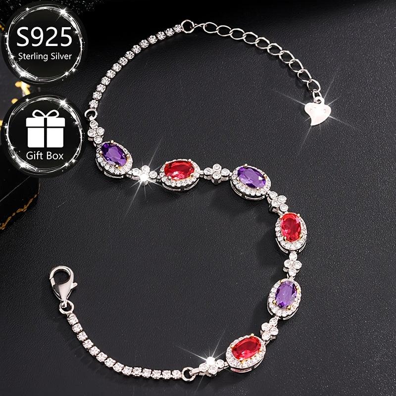 This S925 sterling silver bracelet features colorful cubic zirconia stones, making it light and versatile for daily wear, parties, and formal events. It is an ideal gift for friends.