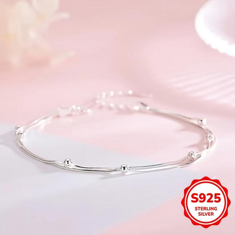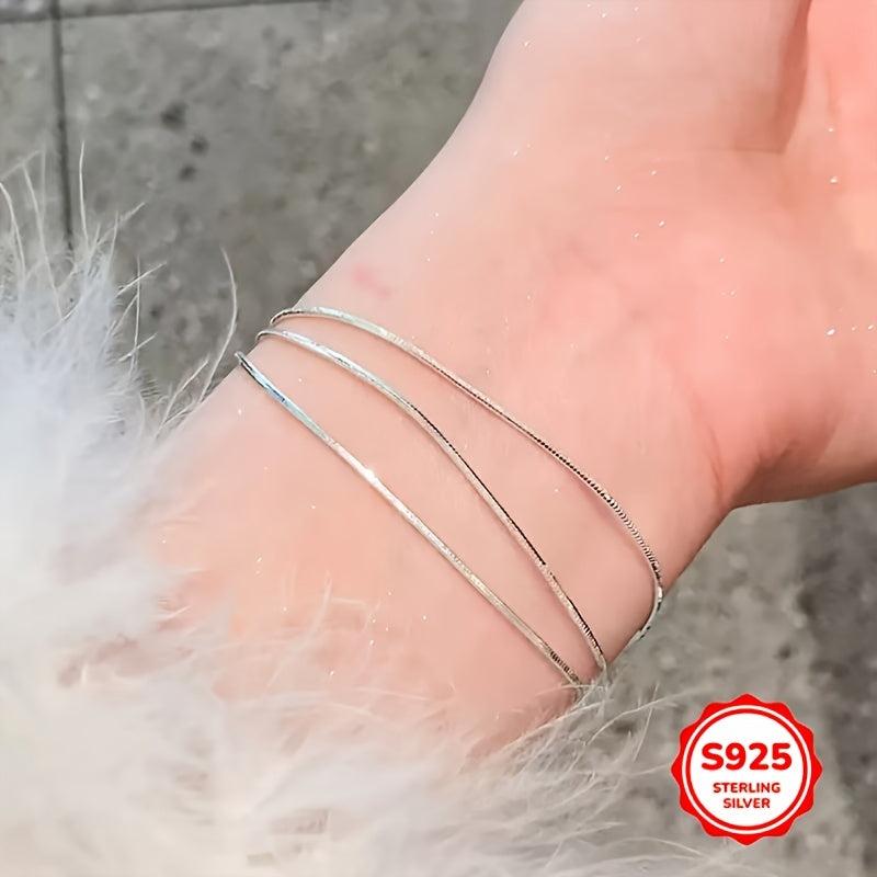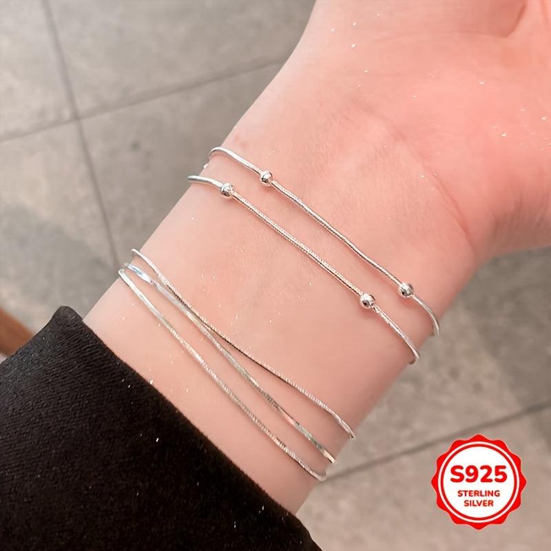 Elegant set of two bracelets made of sterling silver with a layered snake chain design for a delicate and stylish look.