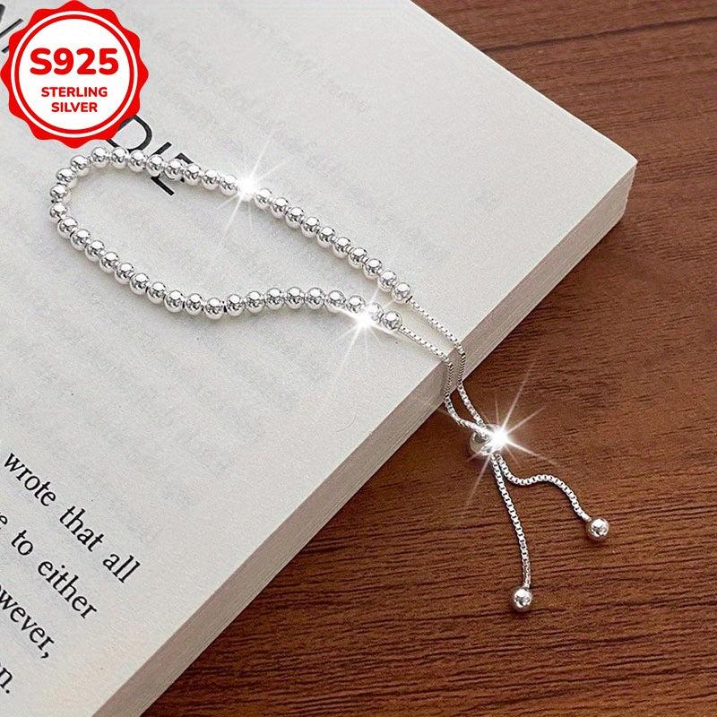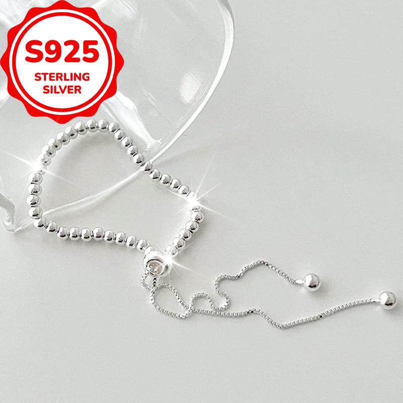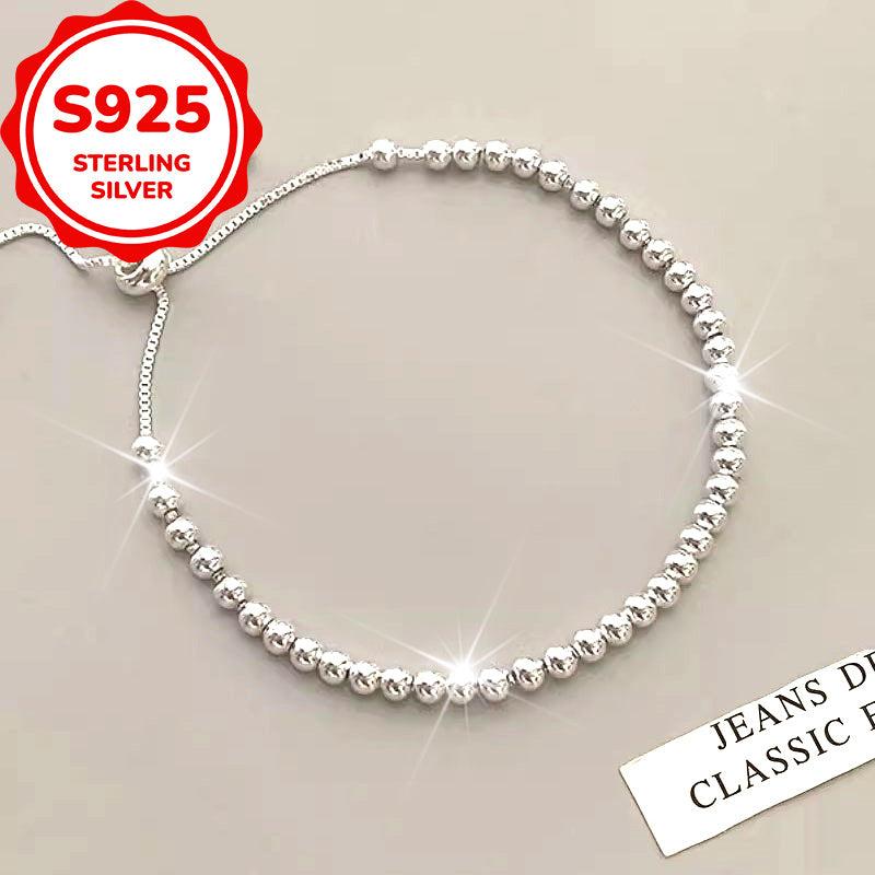 This small round beaded S925 sterling silver bracelet is perfect for daily wear and parties. It features an adjustable design and versatile style.