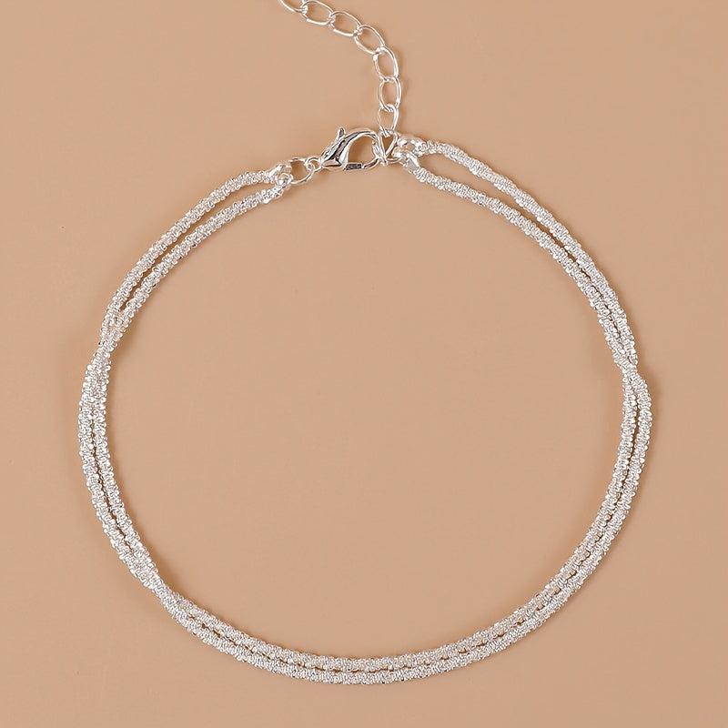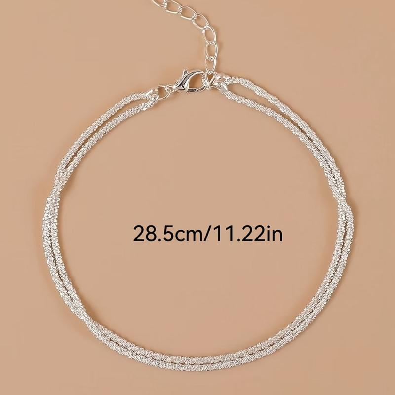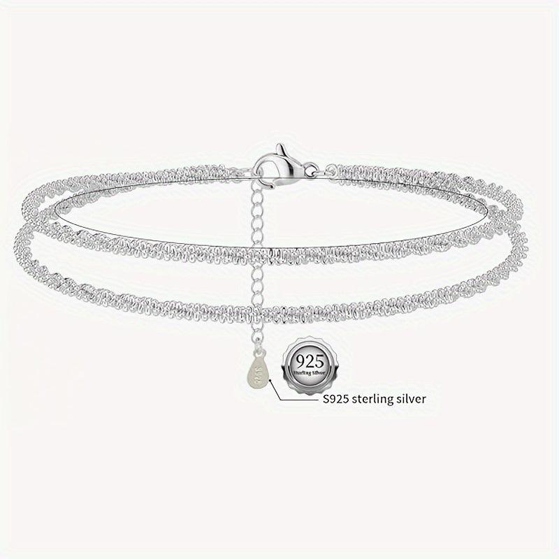 This double layer ankle bracelet is crafted from S925 sterling silver with a glitter style design. It is perfect for daily wear and parties, adding a touch of elegance to any outfit.