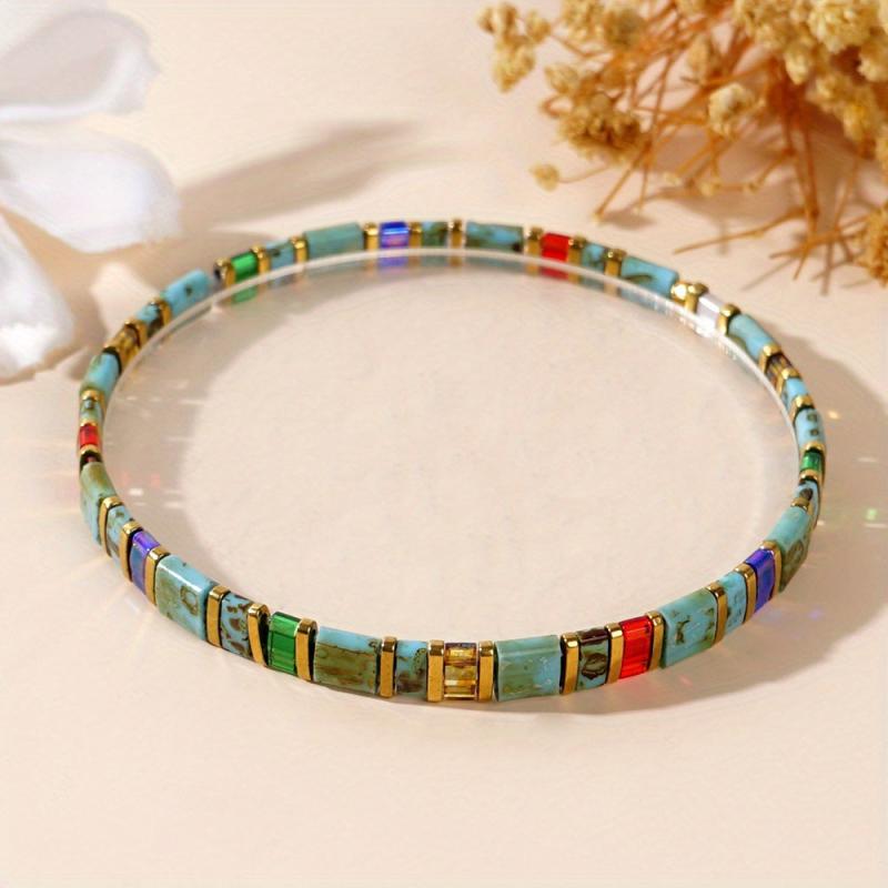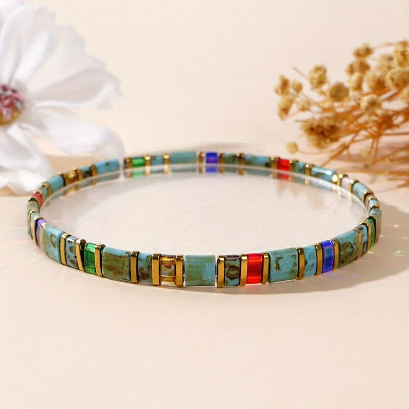Bohemian stretch bracelet with elastic comfort fit for women. Perfect for music festivals and beach vacation.