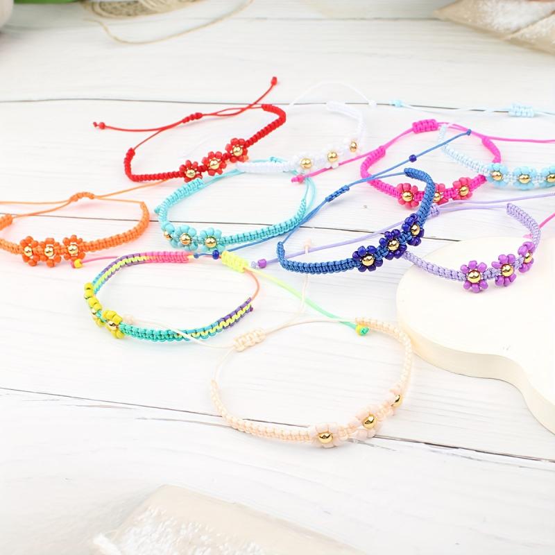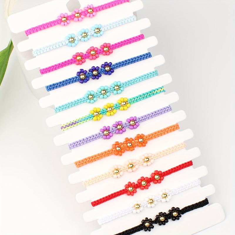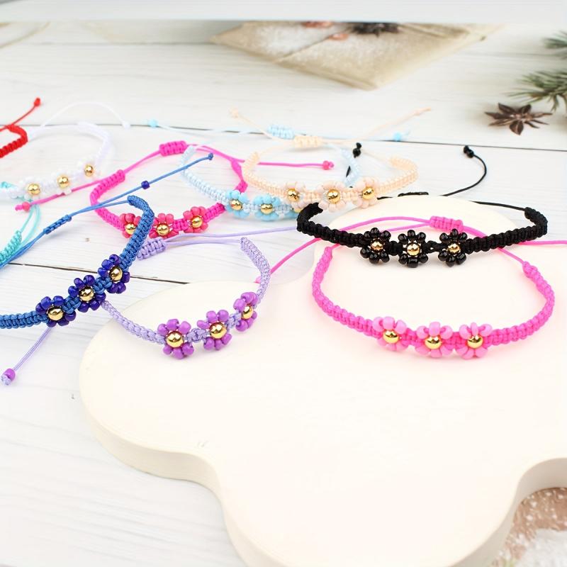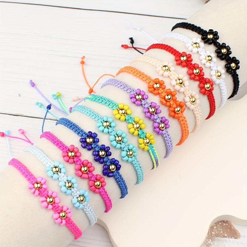 This set includes 12 intricately hand-woven three-dimensional small flower couple bracelets, perfect for friends or couples to share. Each bracelet is unique and beautifully crafted.