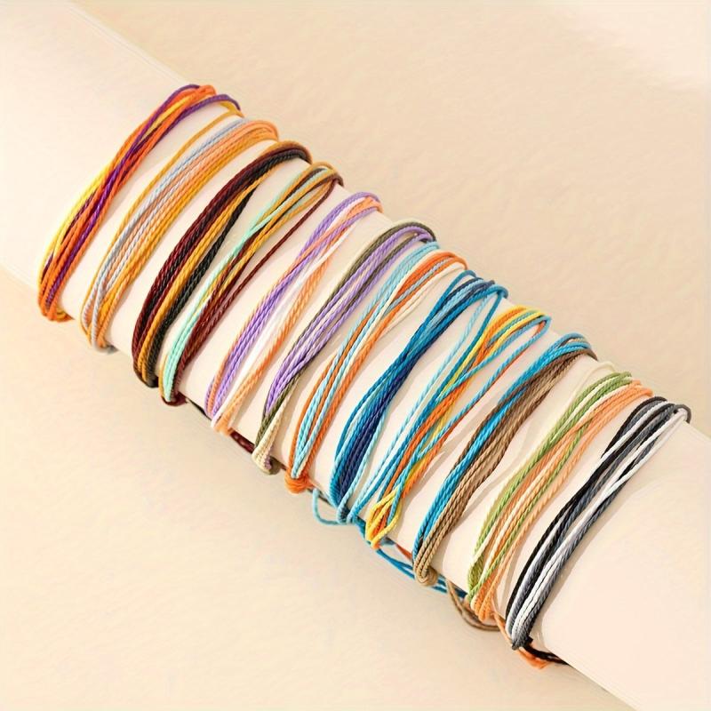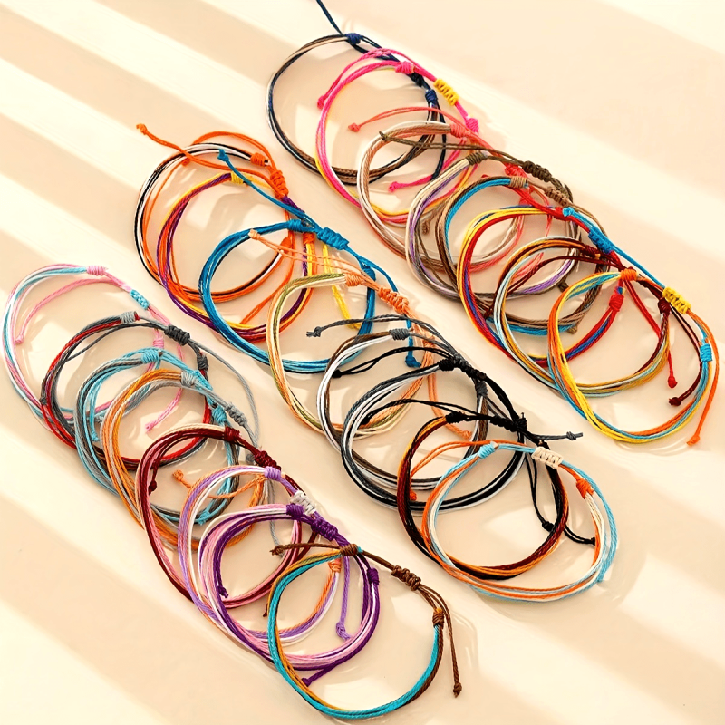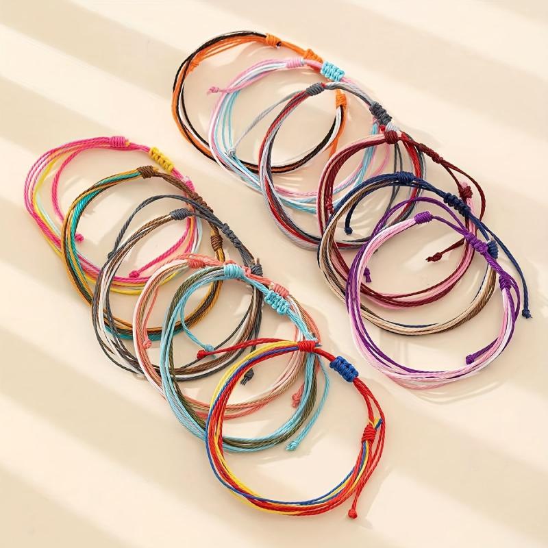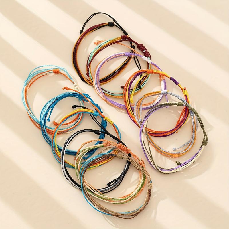Set of 12 Taiwanese Wax Thread Wristbands for Women's Holiday Wear