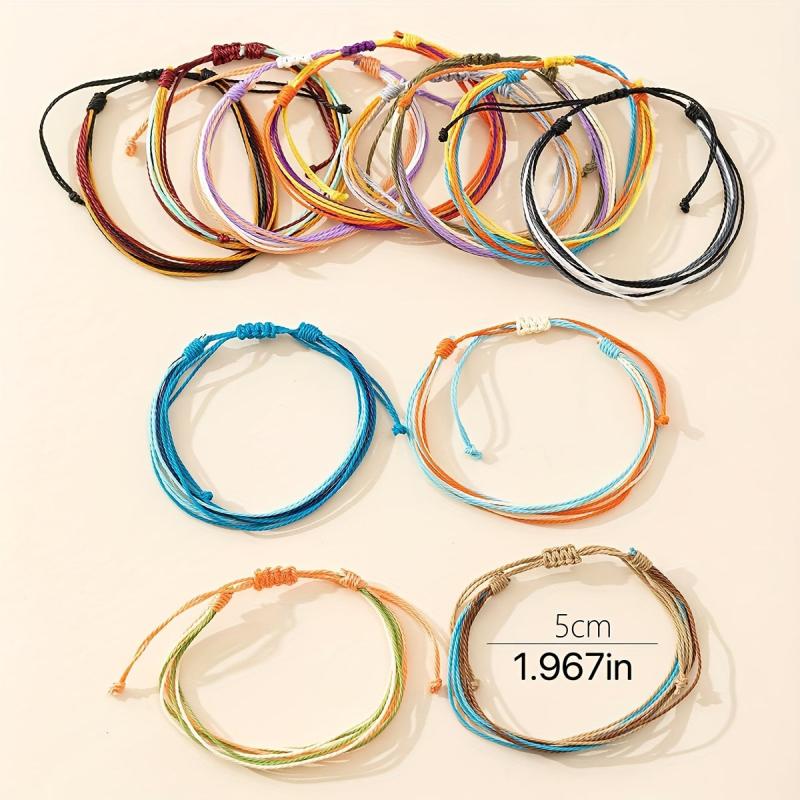 Set of 12 Taiwanese Wax Thread Wristbands for Women&