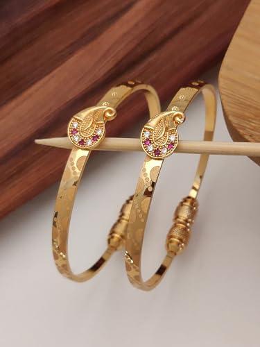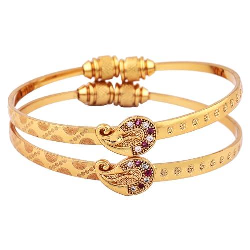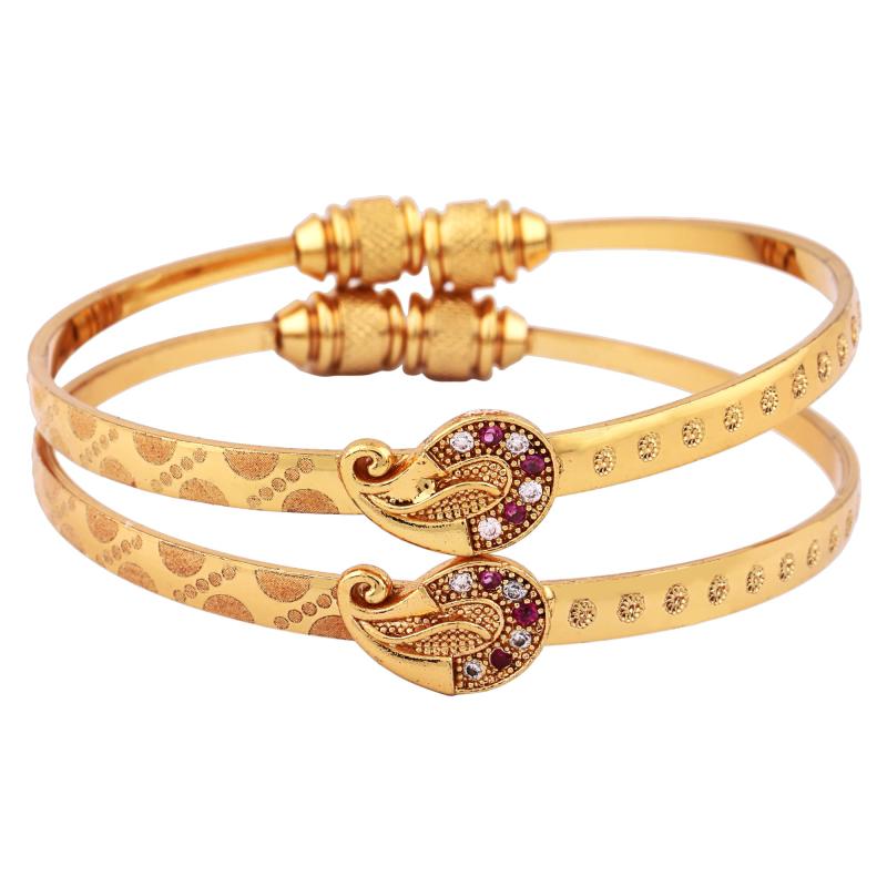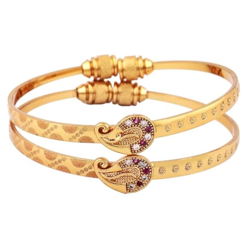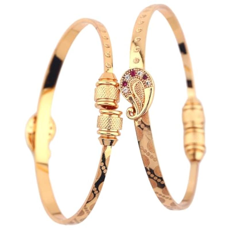 Elevate your style with this set of two traditional bangles. Crafted with 18k gold plating, these bracelets are adjustable to fit any wrist size.