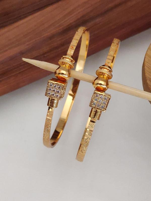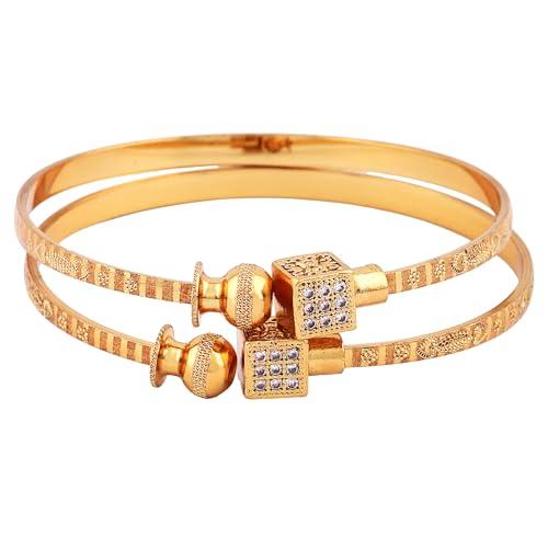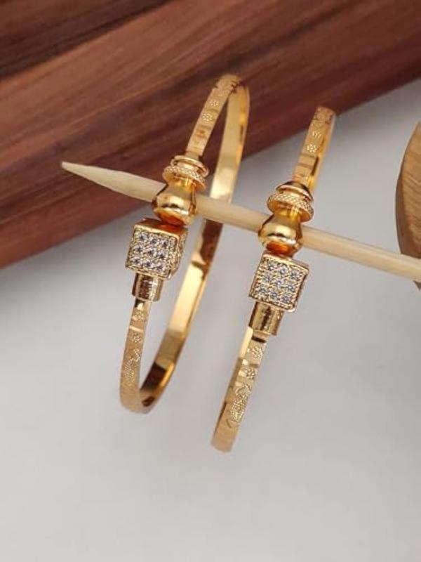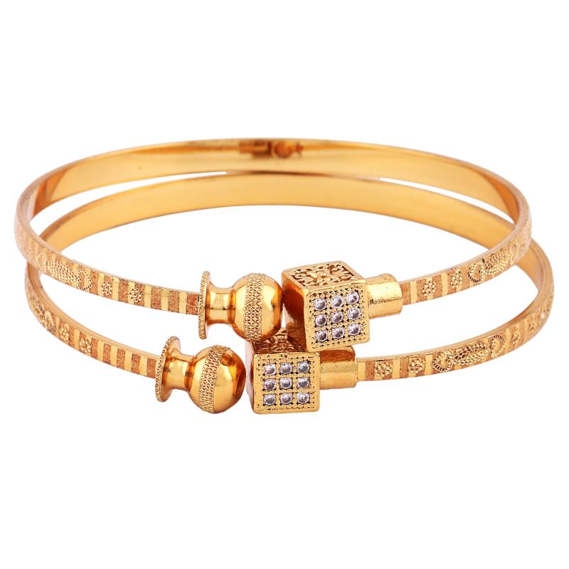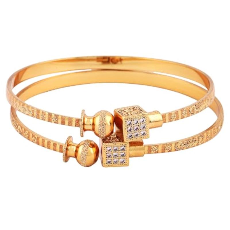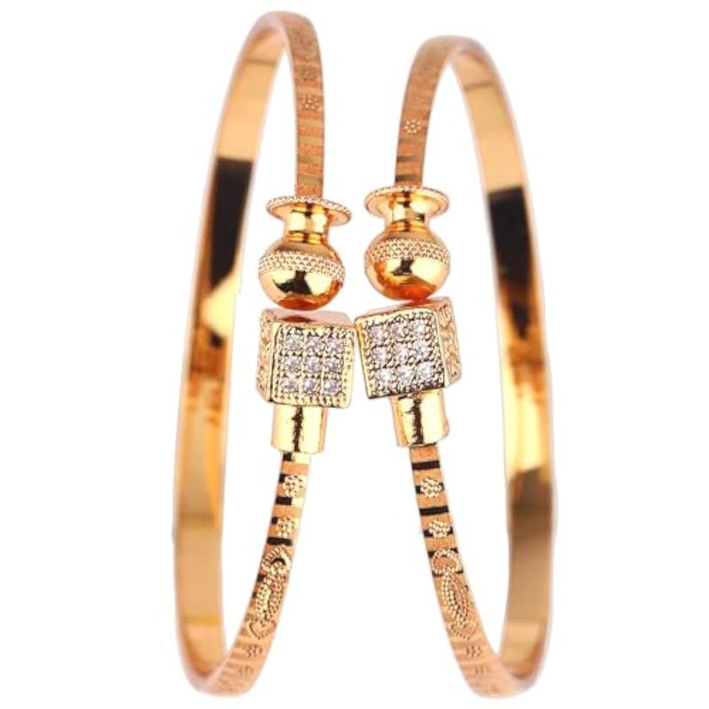 Elegant set of 2 adjustable bangles with traditional design and 18k gold plating.